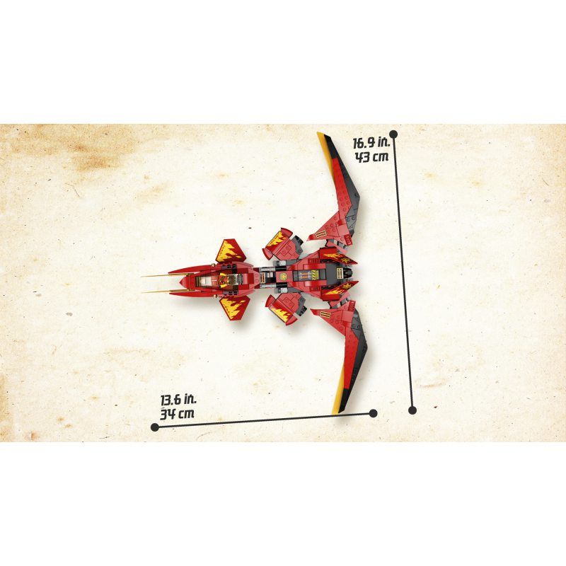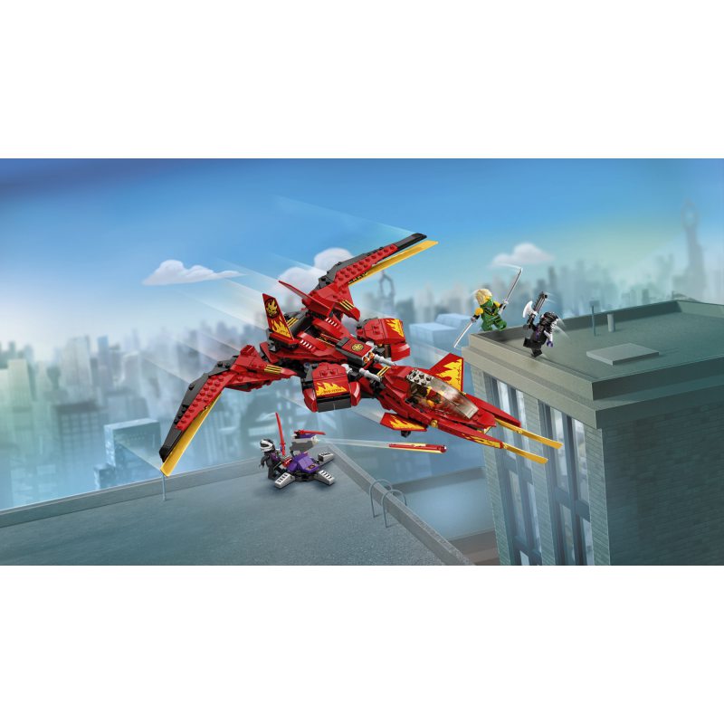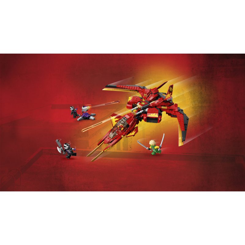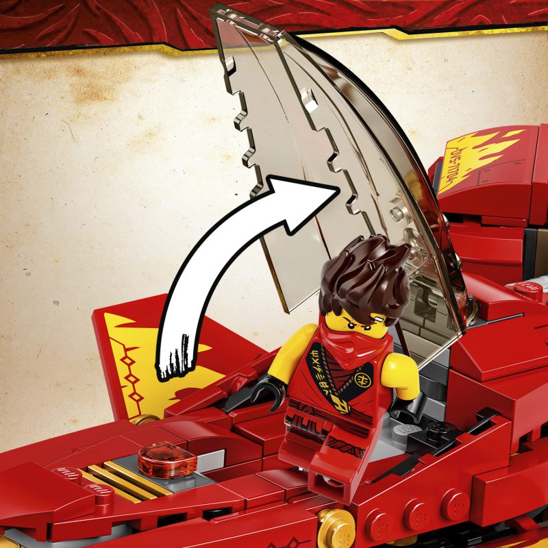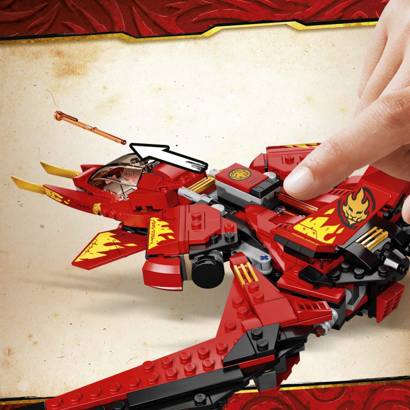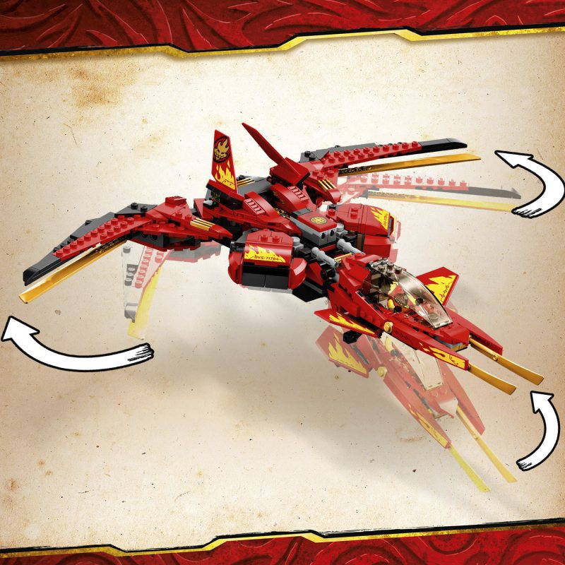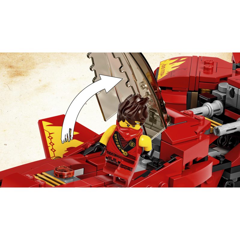 - Odświeżona wersja pojazdu bojowego Kaia z serialu NINJAGO® Mistrzowie Spinjitzu, który ma składane skrzydła, regulowany kokpit i dwie sprężynowe wyrzutnie. W przerwie między zaciekłymi bitwami może być świetną ozdobą dziecięcej sypialni.