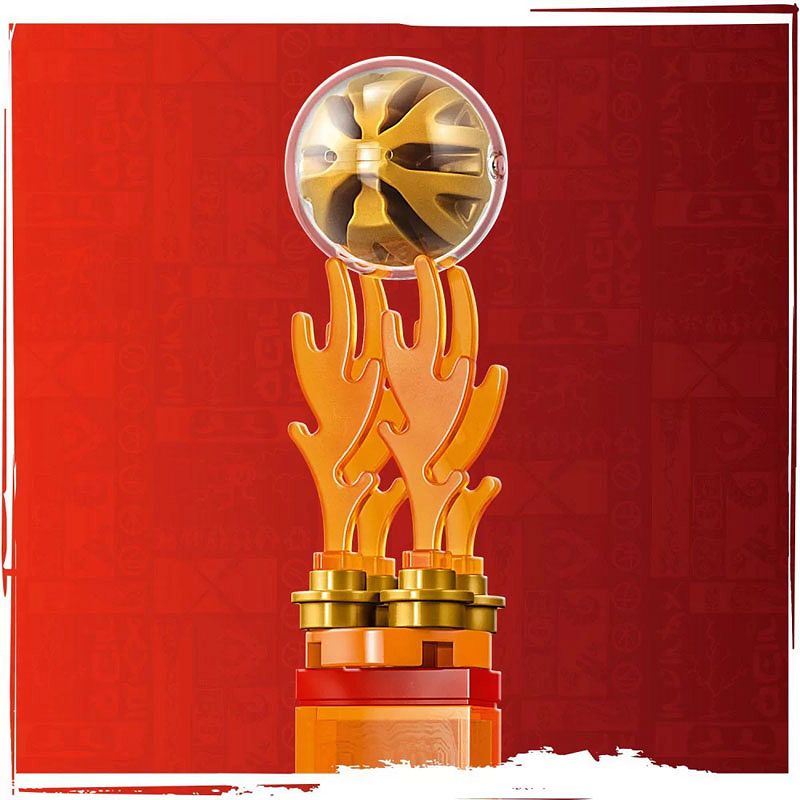 - Nagroda godna ninja — zestaw zawiera również płomienny uchwyt z rdzeniem energii złotego smoka do zebrania, który Kai musi zdobyć, oraz dwie płomienne przeszkody