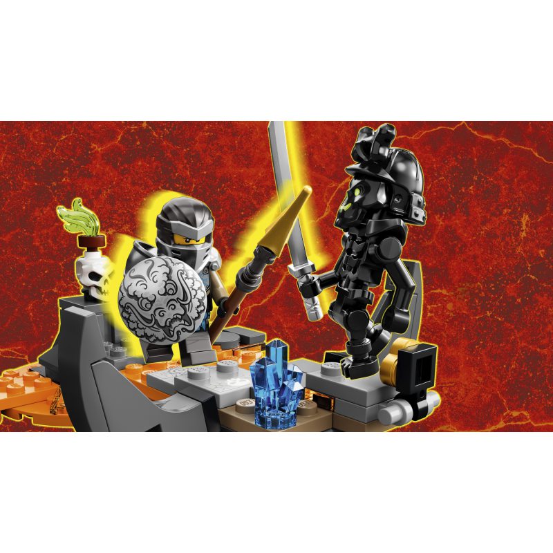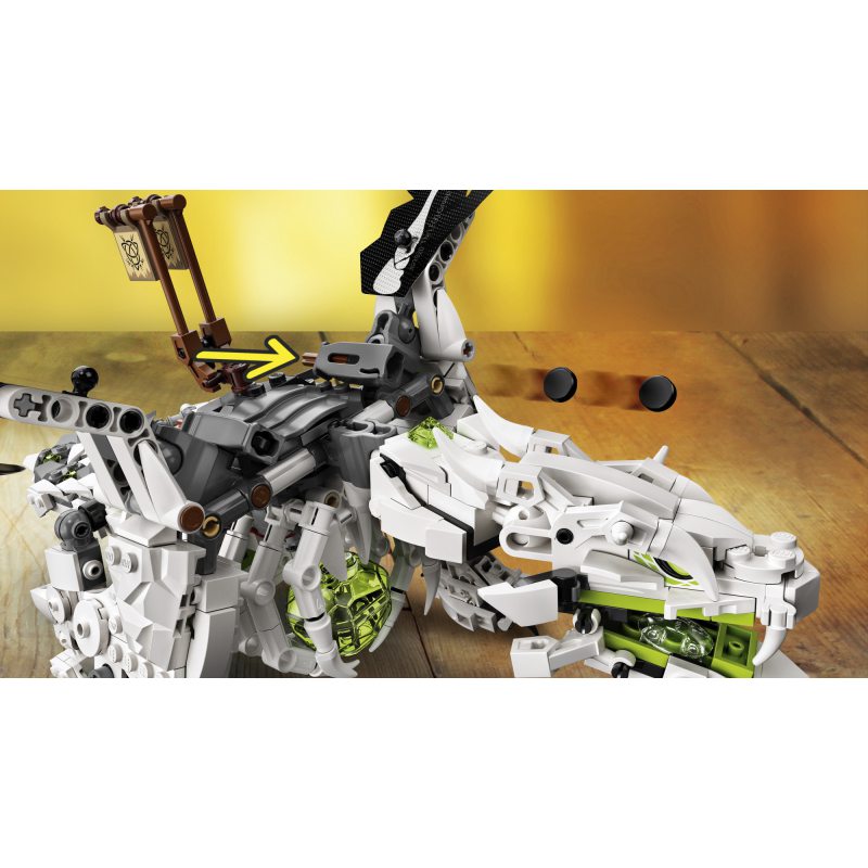 Zabawka ze smokiem jest zarazem grą planszową LEGO® NINJAGO, w której dzieci kręcą spinnerem-kostką i poruszająsię po torze z czyhającą na nie pułapką. Dzieci kręcą spinnerem i wybierają trasę, która pozwoli im zdobyć cenne Ostrze z Kości Słoniowej. Zabawkę można także połączyć z innymi zestawami LEGO, by powstała gigantyczna gra planszowa.