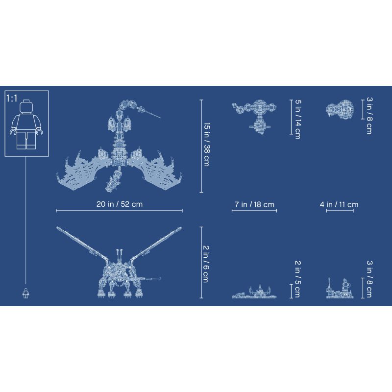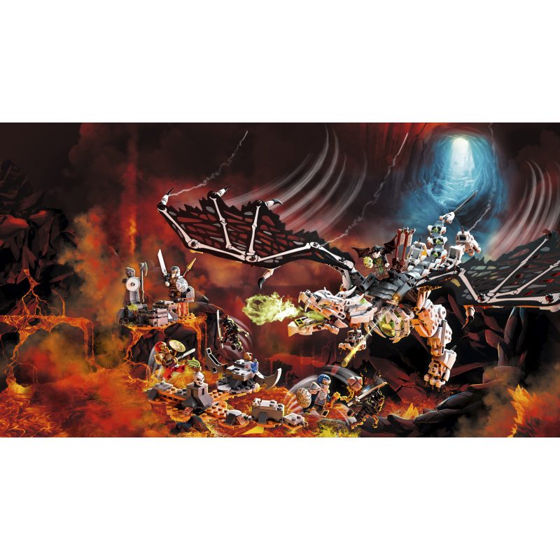 - Smok LEGO® ma ruchome łapy, skrzydła i ogon. Potrafi strzelać z dwóch miotaczy oraz zrzucać kości i pająki. Figurki mogą też być pionkami do gry planszowej, której celem jest ucieczka z Lochów Shintaro.