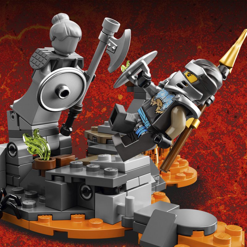- Zestaw ninja z mnóstwem szczegółów, smokiem NINJAGO® i sześcioma minifigurkami: Bohaterskim Jayem, Bohaterskim Kaiem, Bohaterską Nyą, Szkieletowym Czarownikiem i dwoma przebudzonymi wojownikami. Dzieci mogą odgrywać wymyślone przez siebie przygody lub wziąć udział w emocjonującej grze planszowej.