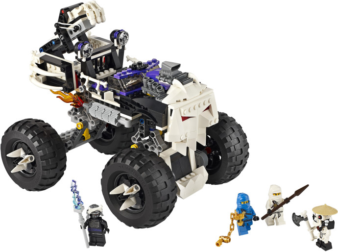 Czaszkowóz to potężny i straszliwy pojazd. Portafi wystrzelić kościstą pięść, a ruchome kościste szczęki mięlą wszystko co stanie mu na drodze. Całość uzbrojenia dopełniają kolczaste felgi. |