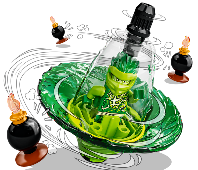Dzieci mogą umieścić Lloyda w obrotowej zabawce, pociągnąć linkę i popatrzeć, jak szybko się obraca albo próbuje ominąć trzy płonące bomby. Minifigurka Lloyda ma wyjątkowy, dotąd niespotykany nadruk mocy żywiołu (nowość na marzec 2022 r.).