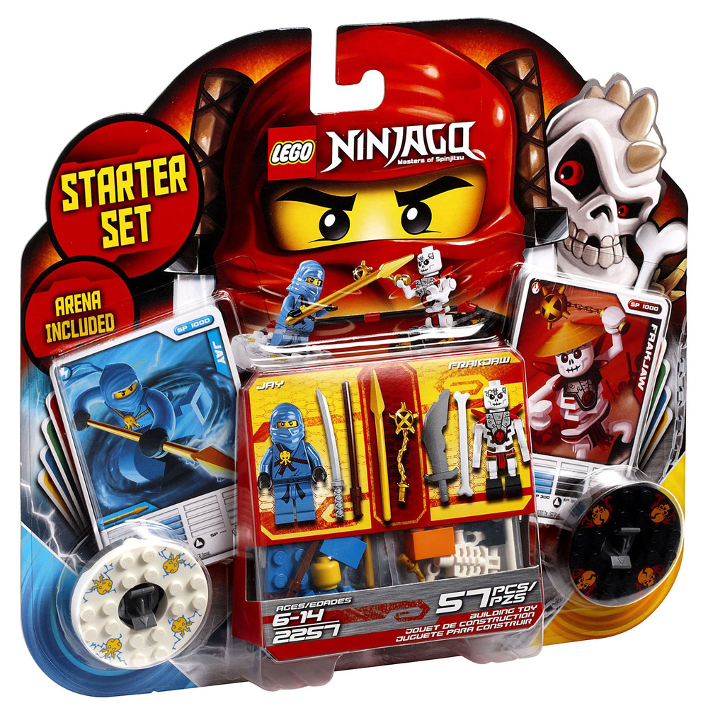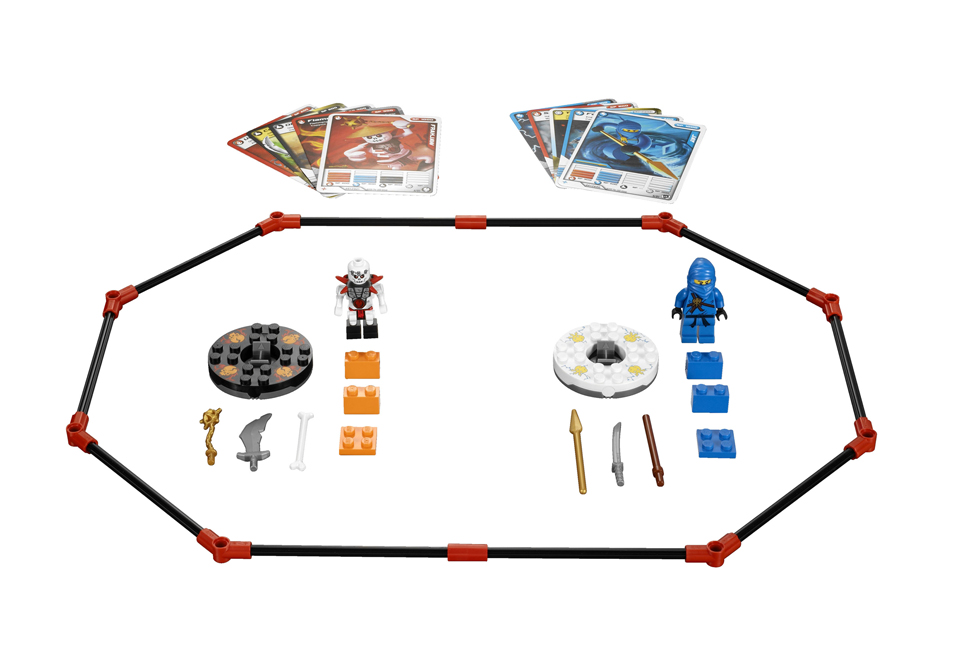 Lego Ninjago Spinners to wirujący wojownicy Spinjitsu. Zestaw startowy to doskonałe wprowadzenie do zabawy spinnersami. Zestaw zawiera arenę, 2 wojowników, 10 kart, 6 rodzajów broni i akcesoria.