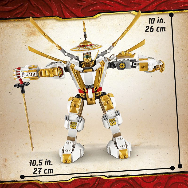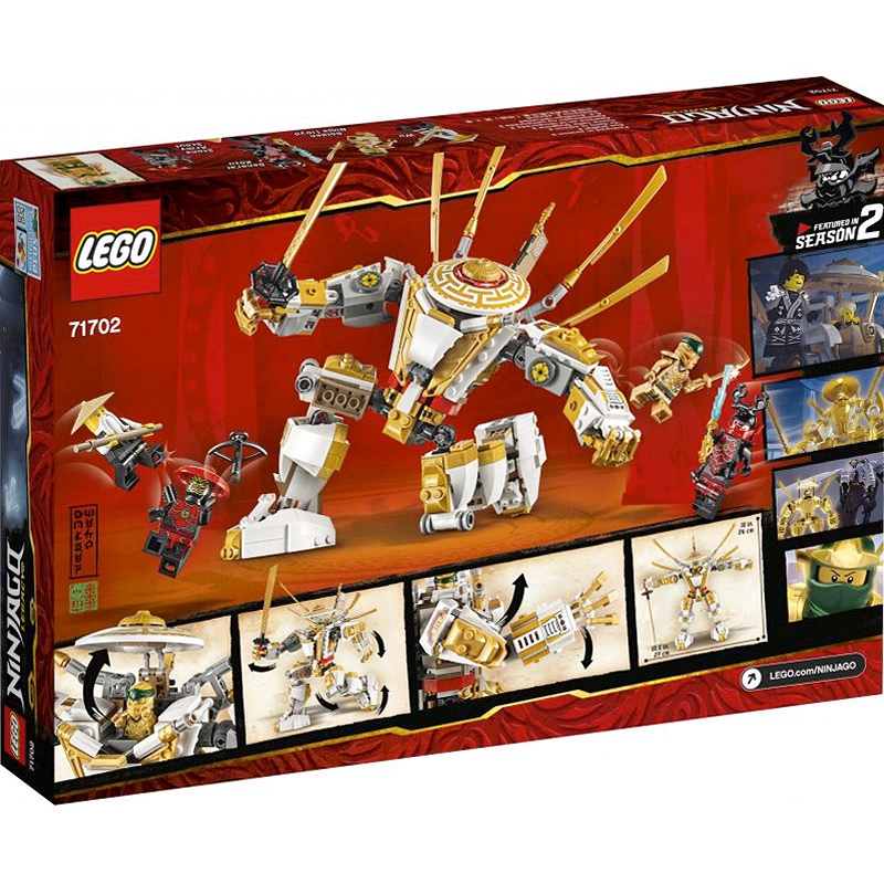 - Klocki LEGO® użyte do zbudowania tego złotego zabawkowego mecha NINJAGO® spełniają najwyższe światowe standardy bezpieczeństwa i jakości. Dając dzieciom zestawy LEGO w prezencie, wiesz, że są one w dobrych rękach.