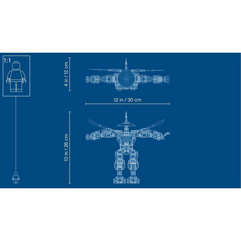 - Zabawka NINJAGO® z mechem idealnie nadaje się do zabawy w domu, ale łatwo zmieścić ją w torbie, więc podróż nie musi oznaczać rozstania z nią. Ninja są świetni w poszukiwaniu nowych przygód! Mech ninja ma 25 cm wysokości, 23 cm długości i 30 cm szerokości.