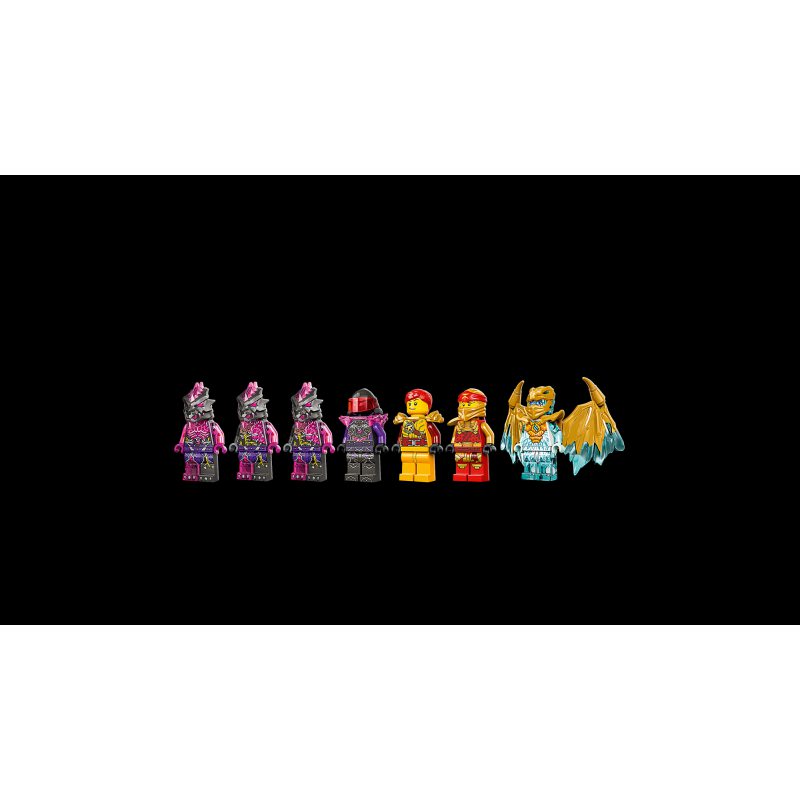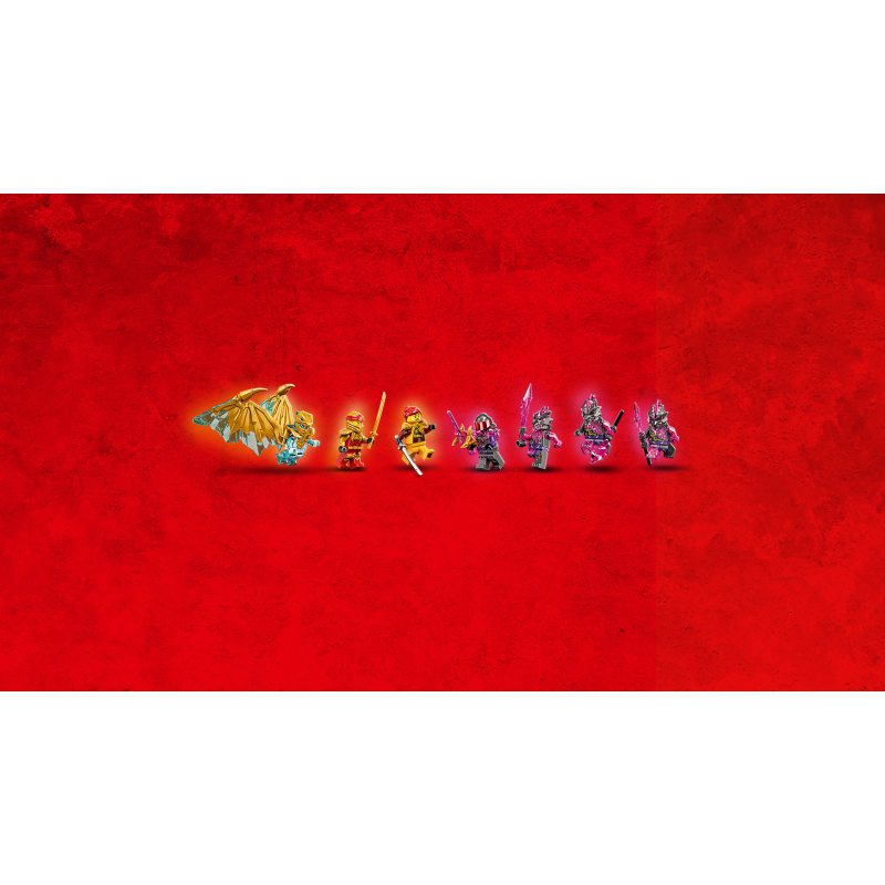 Ten zestaw konstrukcyjny zawiera siedem minifigurek: złotego Kaia, złotego smoczego Zane’a ze skrzydłami złotego smoka, ich sojuszniczkę Skylor oraz złoczyńców do odgrywania walk — generała Pana F, niszczyciela Kamienia Zemsty i dwóch wojowników Kamienia Zemsty.