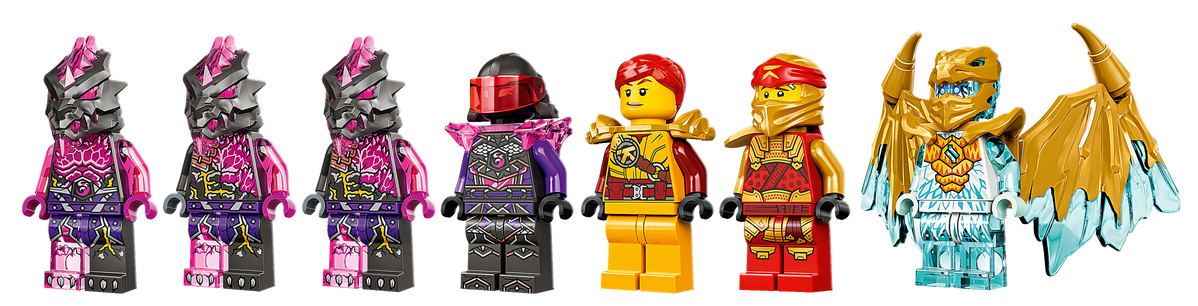 - Jeszcze więcej przygód ninja — w sprzedaży jest też siedem innych zestawów inspirowanych serialem NINJAGO®: Crystallized, m.in. Smoczy krążownik Cole’a (71769), Złoty smoczy odrzutowiec Zane’a (71770) i Kryształowy król (71772)