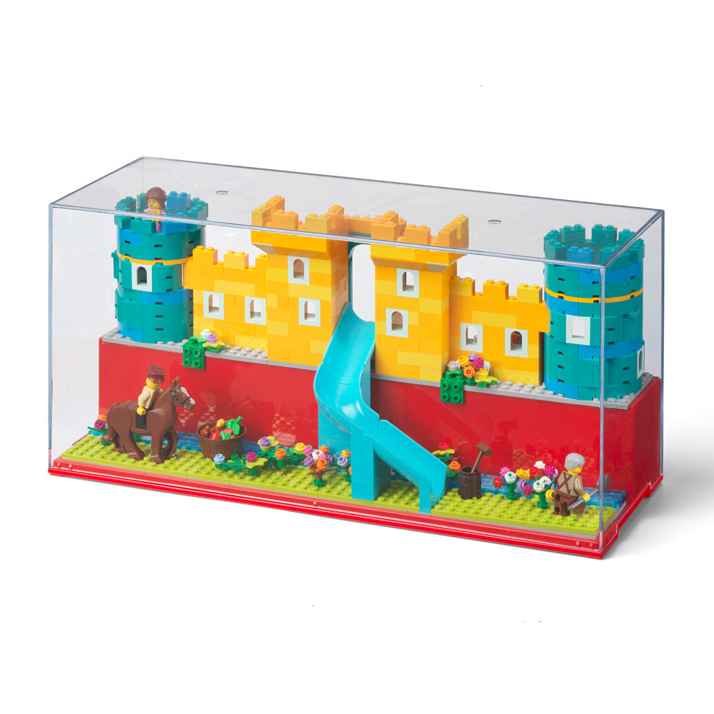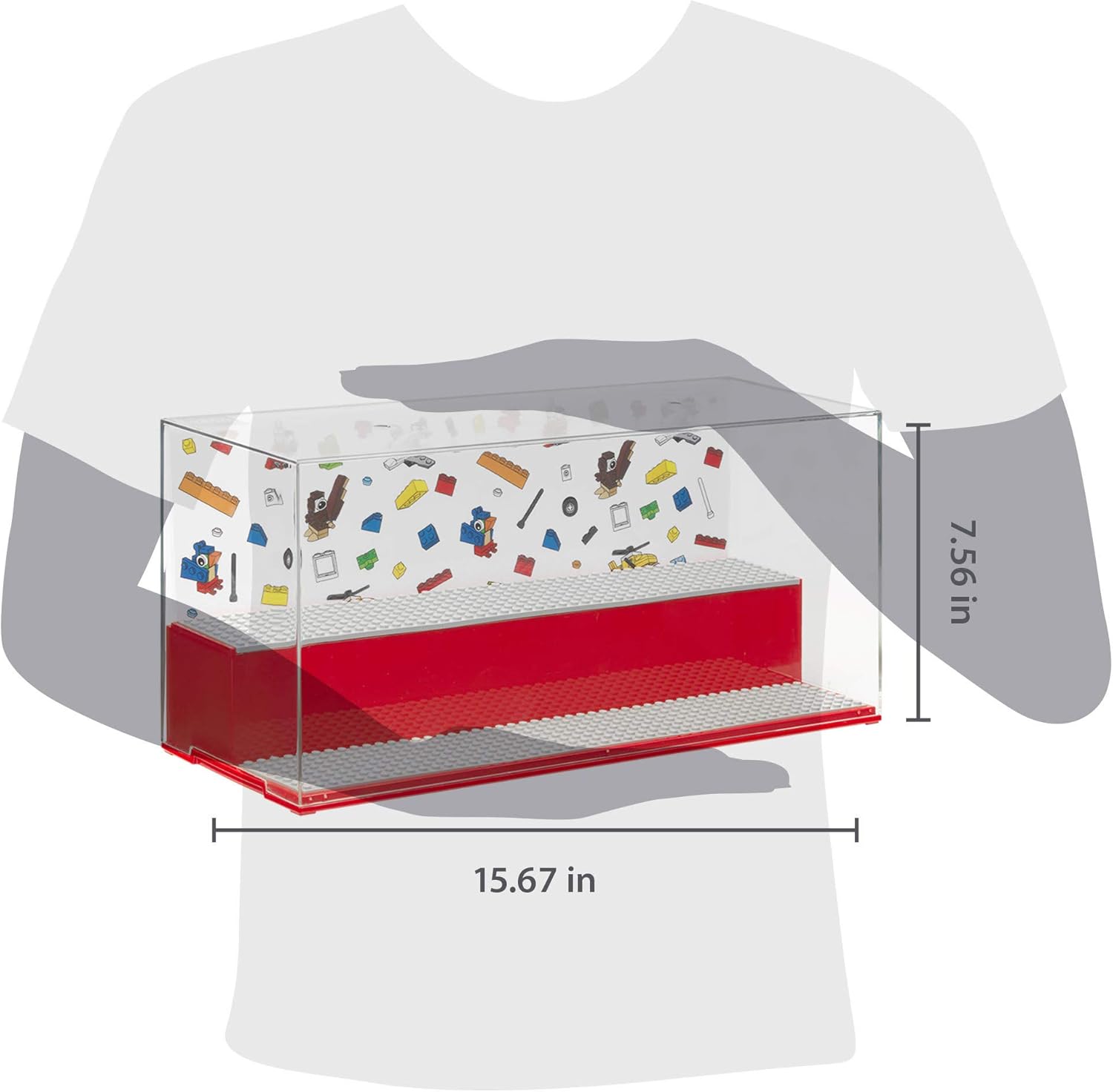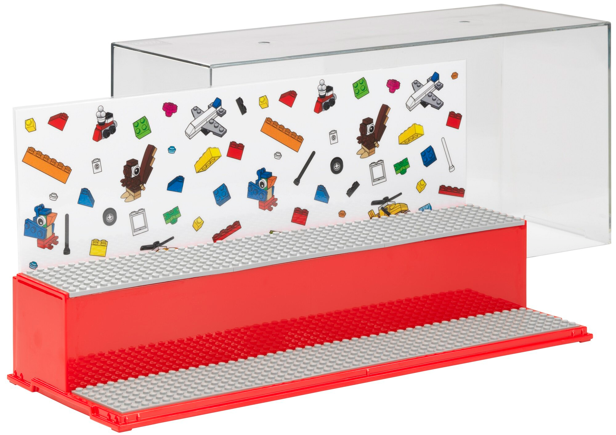Dzięki tej dwupoziomowej gablocie fani LEGO mogą wyeksponować swoje najnowsze dzieła. Ta kolorowa gablota z sześcioma szarymi podstawkami do bezpiecznego przechowywania modeli i minifigurek oraz przezroczystą pokrywą i tłem z motywem LEGO ożywia modele dzieci, chroniąc je przed kurzem, uszkodzeniami i wścibskim rodzeństwem!