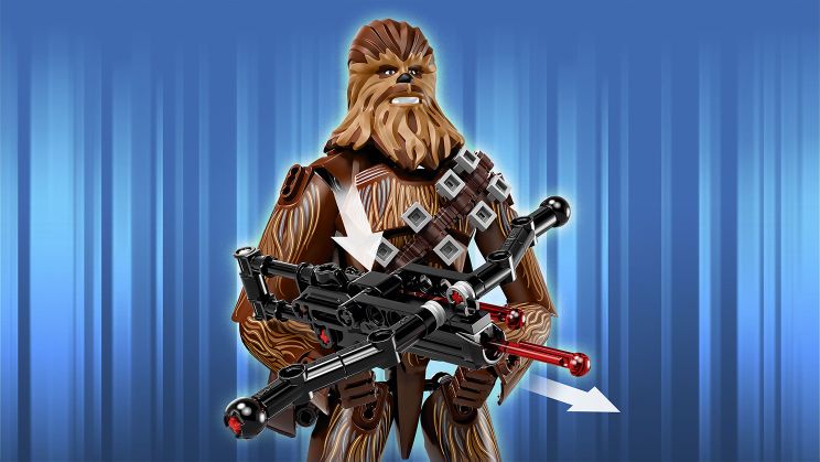 Dodaj do swojej kolekcji LEGO® Star Wars dużego Wookie dzięki tej ruchomej figurce Chewbakki do zbudowania. Chewbacca ma ok. 30 cm wysokości, dekorację przypominającą futro, szczegółową głowę, zdejmowany pas na amunicję, zdejmowaną torbę, kuszę ze sprężynowym miotaczem oraz dodatkowe pociski. Młodzi wojownicy Wookiee pokochają odgrywanie heroicznych bitew z tą ulubioną postacią. Dzięki solidnej budowie figurki zabawa może być naprawdę intensywna.
