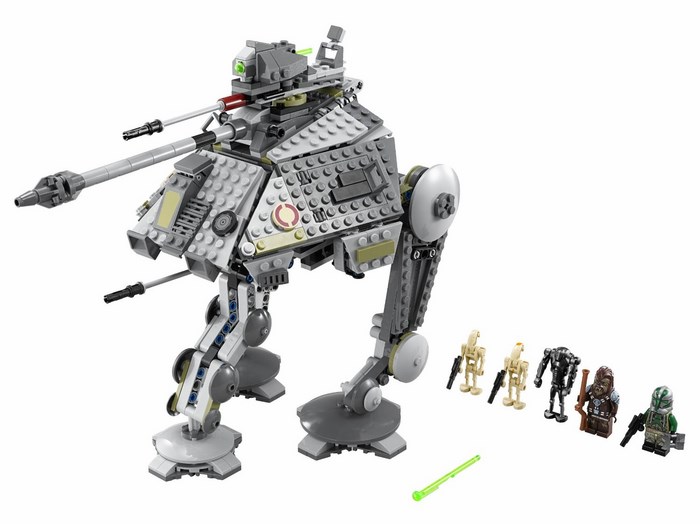 Po bitwie o Kashyyyk, dowódca żołnierzy-klonów Gree™ i wódz Tarfful™ otwierają górny właz pancernej maszyny kroczącej AT-AP™ i wskakują do środka. Ruchome działko blasterowe, zamontowane na grzbiecie obrotowe działko sprężynowe nowego typu i wysuwana przednia noga, która pozwala pokonać nawet najtrudniejszy teren, sprawiają, że armia droidów nie ma szans!