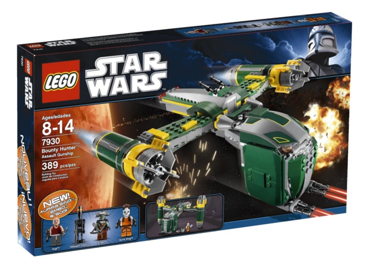 Bounty Hunter Assult Gunship 7930 z serii Lego Star Wars pozwoli schwytać rycerzy Jedi! Kiedy sytuacja w czasie Clone Wars osiągnęła status niepewnej równowagi łowcy nagród wyruszyli w przestrzeń w poszukiwaniu rycerzy Jedi. Statek łowców nagród posiada otwierany kokpit, zmienną geometrię skrzydeł, cele dla pojmanych rycerzy i wiele akcesoriów. W pudełku znajdują się także 4 figurki w tym 3 zupełnie nowe – Sugi, Aurra Sing, Embo i Assasin Droid IG-86.