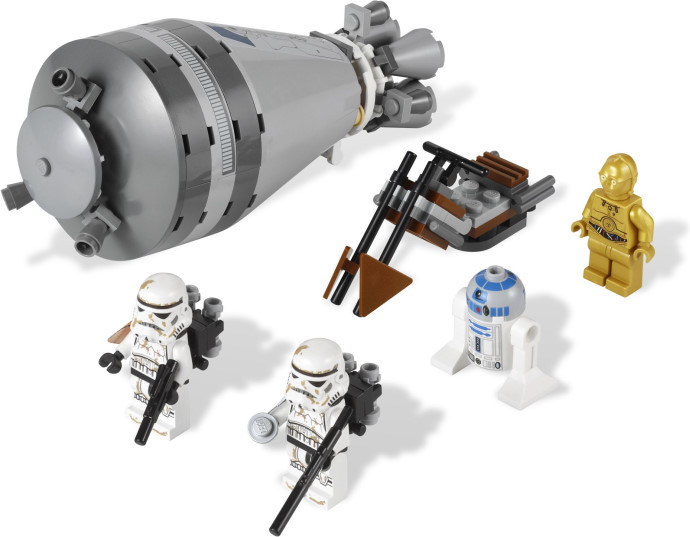 C-3PO i R2-D2 mają tajne plany Gwiazdy Śmierci i muszą uniknąć schwytania, uciekając na pustynną planetę Tatooine kapsułą ratunkową. Czy wylądują bezpiecznie i nie dadzą się złapać szturmowcom imperialnym na skuterze?