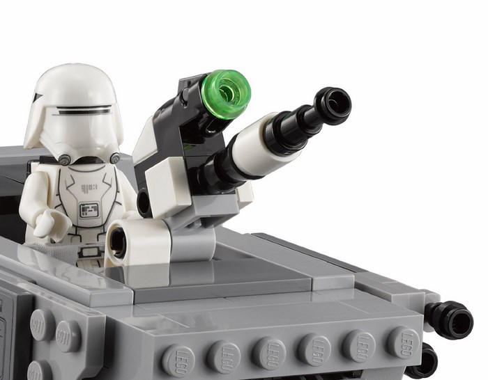 Wezwij zbrojne wsparcie w postaci śmigacza śnieżnego Najwyższego Porządku! Ten pojazd szybkiego reagowania przewozi trzyosobową załogę i ma przedni przedział ładunkowy, stały miotacz pocisków w kokpicie, dwa szybkostrzelne miotacze w silnikach oraz przezroczyste koła, która są niewidoczne, więc śmigacz wygląda, jakby naprawdę lewitował. Teraz możesz samodzielnie odtworzyć niesamowite sceny z filmu Gwiezdne Wojny: Przebudzenie Mocy.