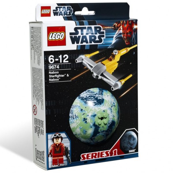 Lego Star Wars Naboo starfighter & Naboo 9674 - Pokryta bagnami, trawiastymi równinami i obszernymi podwodnymi oceanami planeta Naboo odgrywa ważną rolę w epizodzie I serii Gwiezdne Wojny, filmie Mroczne widmo. Naboo wysyła myśliwiec, aby się obronić przed zakusami Federacji.