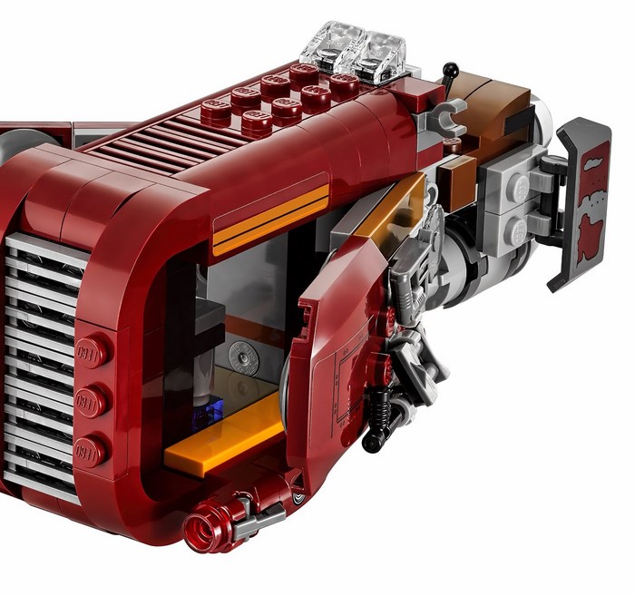 Pędź do akcji śmigaczem Rey. Ten niesamowity pojazd ma wszystko, czego Rey potrzebuje podczas badania pustynnej planety — dwa miotacze pocisków, otwierany luk ładunkowy i boczną sakwę, blaster, piłę i elektroniczną lornetkę. Są też odłączane sanie z miejscem dla minifigurki. Przydają się, gdy Rey musi szybko uciekać między pustynnymi wydmami! Odtwórz niesamowite sceny z filmu Gwiezdne Wojny: Przebudzenie Mocy.