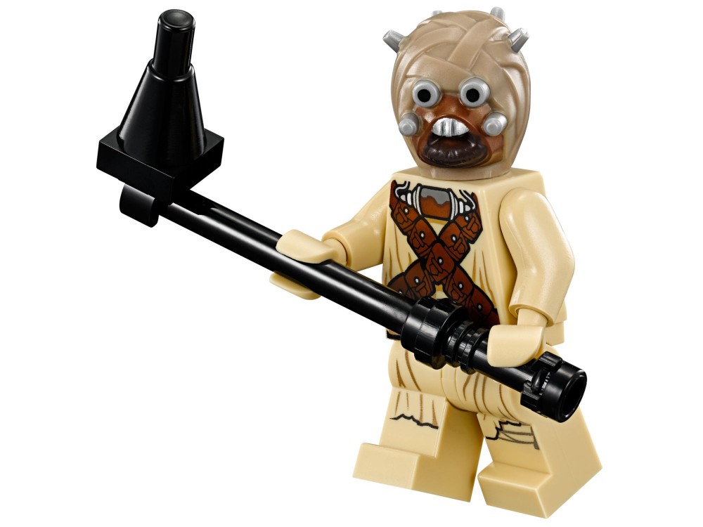 Szybki T-16 Skyhopper z zestawu LEGO® Star Wars to idealny pojazd do przemykania się ciasnymi wąwozami Tatooine. Śmigacz ma kabinę pilota, regulowane płaty, odłączany zasobnik i dwie sprężynowe wyrzutnie, co w połączeniu ze zwrotnością czyni z niego idealny pojazd do ćwiczenia polowania na pustynne szczury. Uważaj tylko, żeby nie nadziać się na wrogich Tuskenów, którzy chętnie atakują kijami gaffi!