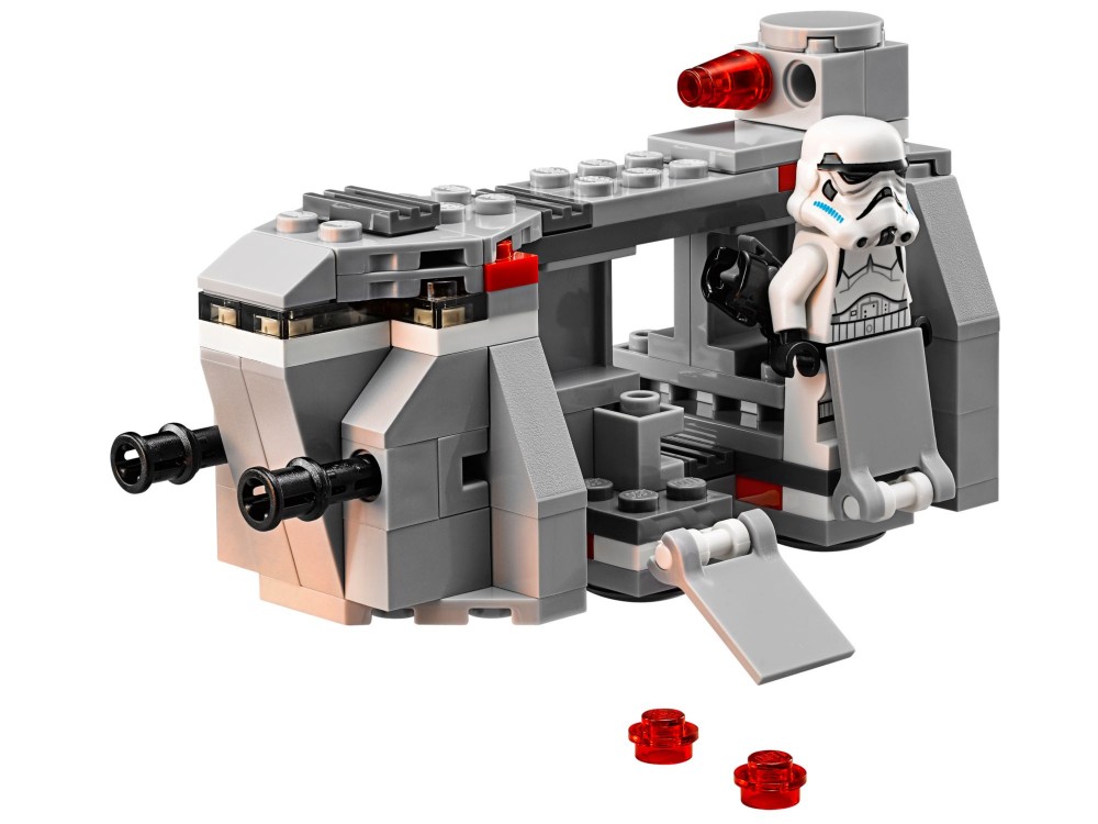Wyśledź kryjówkę rebeliantów na planecie Lothal, wysyłając tam zbrojny oddział z zestawu Transport szturmowców Imperium LEGO® Star Wars. Wydaj szturmowcom po miotaczu, załaduj ich i przygotuj się do desantu. Jeśli znajdą się pod ostrzałem, odpowiedz ogniem z podwójnego działka w wieżyczce dachowej, a rebelianci będą uciekać w popłochu!