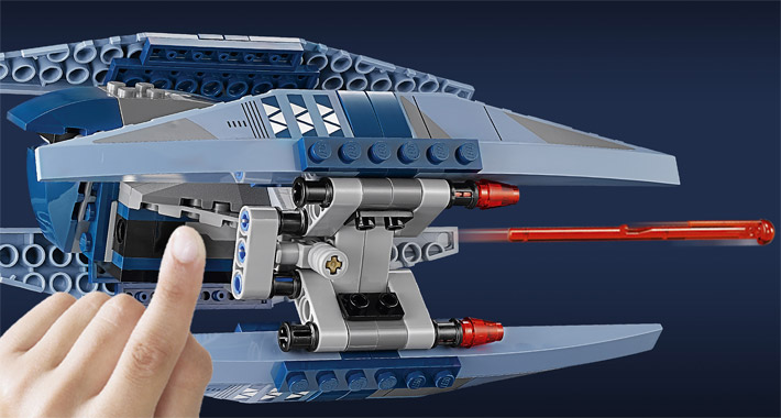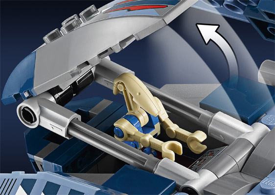 Model ma dwa tryby: latający i kroczący. Przejdź z trybu latającego w kroczący. Załaduj i odpal działka sprężynowe nowego typu. Wyślij droida sabotażowego, aby uszkodził wrogie myśliwce. Odtwórz ekscytujące sceny walki z trzeciego epizodu „Gwiezdnych Wojen” — „Zemsty Sithów”.