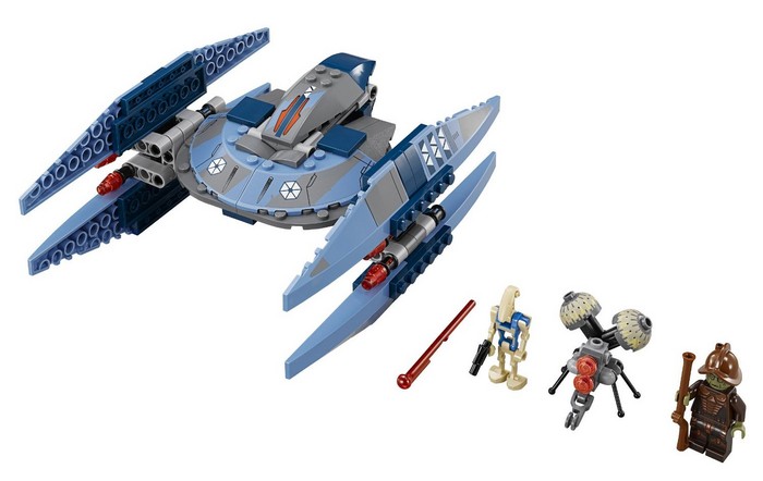 - minifigurka Neimoidianina oraz droida sabotażowego i figurka droida-pilota z pistoletem blasterowym.
