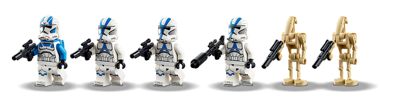 - Zestaw konstrukcyjny LEGO® Star Wars™ zawiera cztery minifigurki LEGO: szturmowców 501. legionu klonów (nowość na 2020 r.) oraz szturmowca z plecakiem odrzutowym, a do tego plecak odrzutowy, dwa droidy bojowe i broń, by można było odgrywać bitwy.