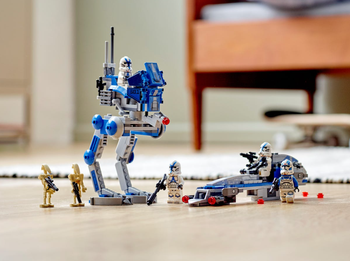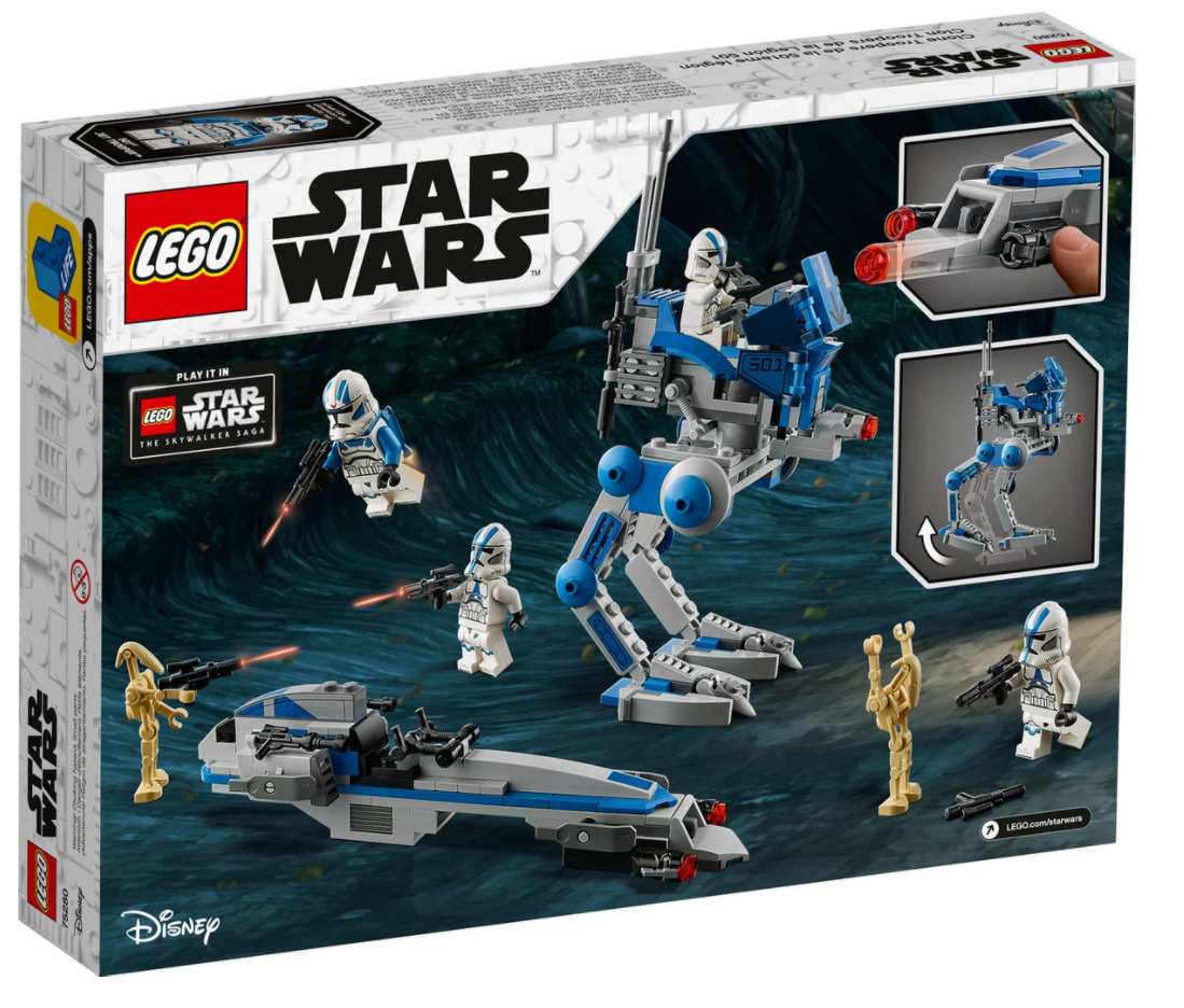 - Dzieci mogą wcielać się w szturmowców z 501. legionu klonów i na nowo przeżywać ekscytujące wydarzenia z filmu „Gwiezdne Wojny: Wojny klonów” — to możliwe dzięki zestawowi LEGO Star Wars™ 75280 z maszyną kroczącą AT-RT i śmigaczem BARC.