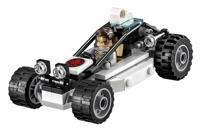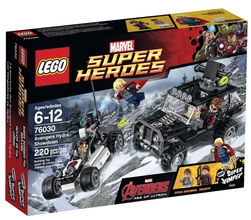 Dołącz do Thora i Hawkeye’a ścigających zbira z Hydry przez zimowy las Sokovii! Umieść Hawkeye’a w kokpicie niesamowitego pojazdu 4×4 Avengersów i naciśnij na gaz. Kiedy dogonisz terenówkę Hydry, wystrzel rakiety z obrotowej wieżyczki, a potem wykonuj sprytne manewry pozwalające uniknąć pocisków z potężnego działka terenówki. Umieść Thora na jego Super Jumperze, aby jednym idealnie wymierzonym skokiem rozbroić działko wroga! W zestawie 3 minifigurki z bronią i akcesoriami: Thor, Hawkeye i zbir z Hydry.