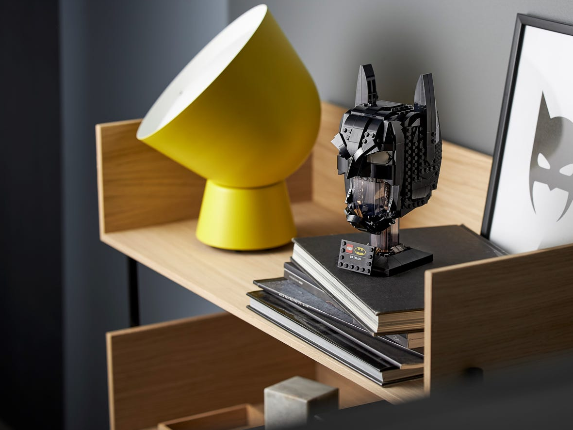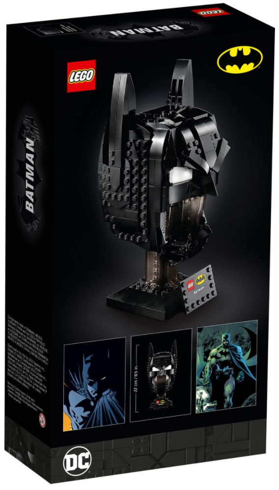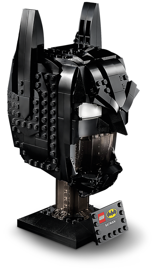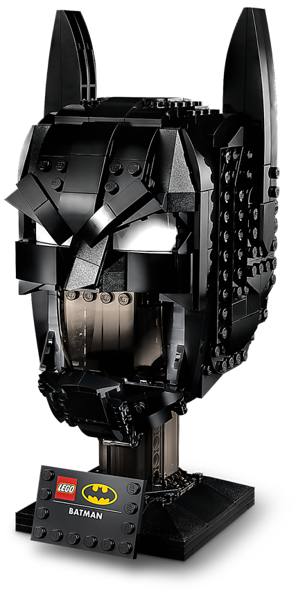 - Autentycznie wyglądająca wersja kultowego hełmu Batmana™ z klocków LEGO® zawiera przezroczyste klocki w miejscu twarzy i stylową plakietkę informacyjną umieszczoną na solidnej podstawce.
