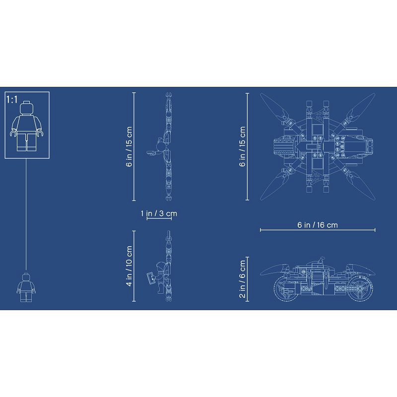 - Motocykl Spider-Mana ma ok. 17 cm długości, 13 cm szerokości i 6 cm wysokości i można go z łatwością połączyć z innymi zestawami LEGO® Marvel, by przeżyć jeszcze więcej przygód z superbohaterami. A gdy nie ściga akurat złoczyńców, doskonale sprawdzi się jako ozdoba pokoju dziecięcego.