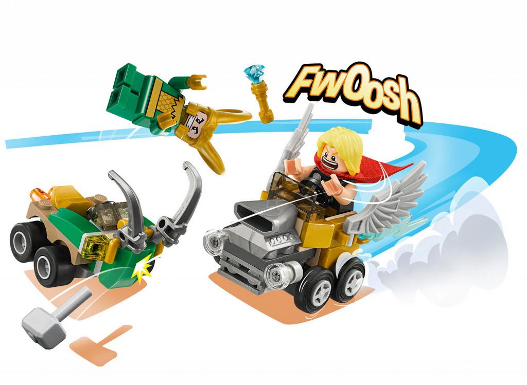 Urządź braterską walkę między Thorem a Lokim! Rozpędź na maksa ich wspaniałe samochodziki Mighty Micros. Zaatakuj potężnym młotem Mjölnirem Thora i berłem Lokiego. Który z braci wygra? Wybór należy do Ciebie!