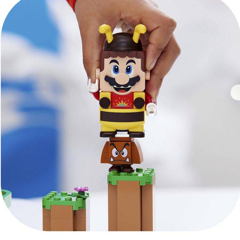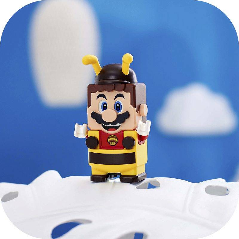 - Zestaw Mario pszczoła — ulepszenie (71393) zawiera interaktywny strój dla LEGO® Mario™ (figurka nie jest częścią zestawu), dzięki któremu fani LEGO® Super Mario™ mogą jeszcze bardziej urozmaicić swoje poziomy.