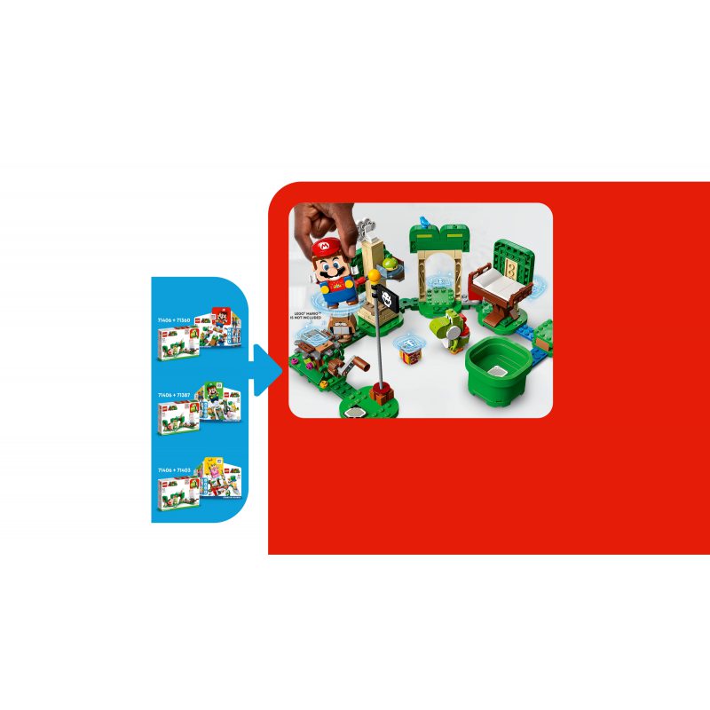 - Dwie figurki ze świata LEGO® Super Mario™ — Yoshi i Monty Mole, z którymi LEGO® Mario™, LEGO® Luigi™ lub LEGO® Peach™ (uwaga: te trzy figurki nie są częścią zestawu) mogą wejść w interakcję
