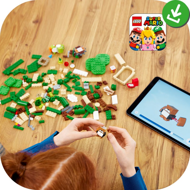 - Aplikacja towarzysząca — pobierz aplikację LEGO® Super Mario™, w której znajdziesz instrukcje budowania, inspirujące materiały i nie tylko.