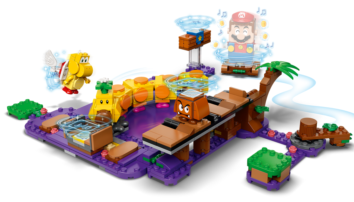 - Zestaw z trującą Bąbelkową Dżunglą to dla małych budowniczych okazja do wymyślania rozmaitych wyzwań, które mogą dodać do poziomu startowego LEGO® Super Mario™ dzięki zestawowi rozszerzającemu Trujące bagno Wigglera (71383).