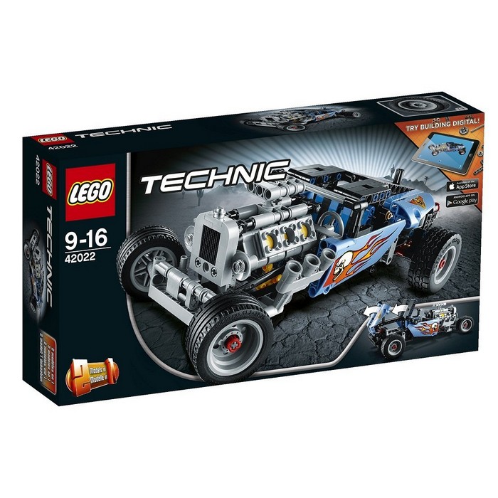 LEGO Technic Hot Rod 42022 to niezwykły samochód z serii LEGO Technic, zawiera wiele realistycznych szczegółów, takich jak odsłonięty sześciocylindrowy silnik z ruchomymi tłokami, działający układ kierowniczy, grube opony, elegancki, składany dach i dekoracja karoserii, przedstawiająca czaszkę i płomienie. Model można przebudować w samochód rajdowy.