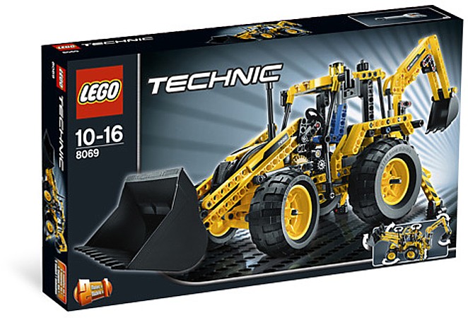 Koparko-ładowarka 8069 z serii Lego Technic umożliwia łatwe kopanie uruchamianymi kołami zębatymi, przednią łyżką oraz obracaną na boki łyżką tylną. Przy naprawdę trudnych pracach warto rozstawić podpory, aby zabezpieczyć tę czterokołową maszynę przed przewróceniem! Do sterowania koparko-ładowarką zastosowano tu nowe, miniaturowe siłowniki liniowe. Z tego samego zestawu można również stworzyć podnośnik belek.