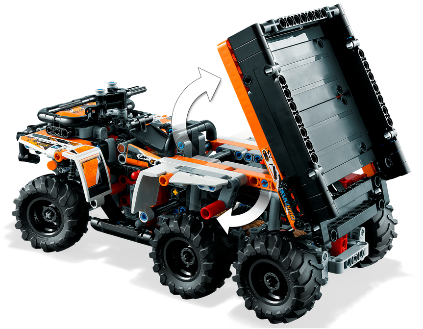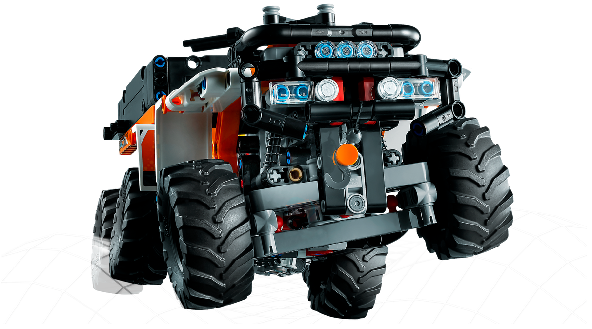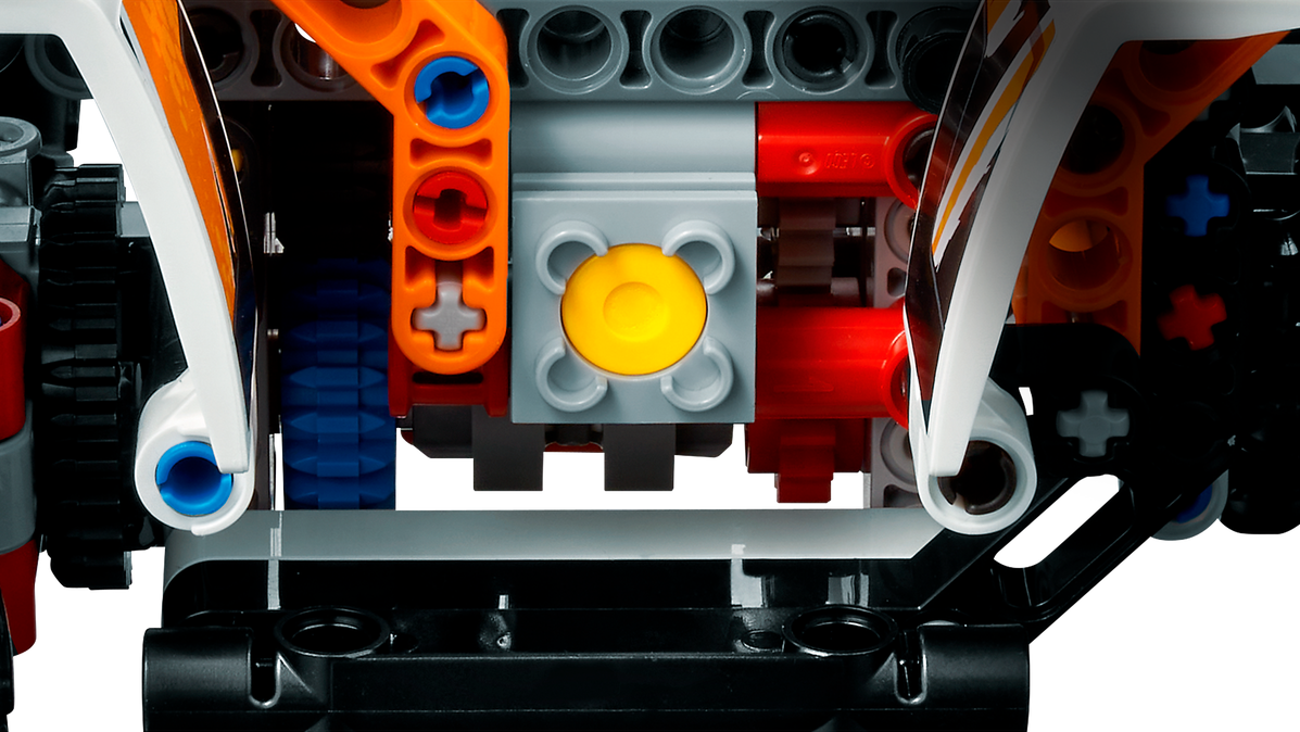 - Realistyczne funkcje — ten model to pierwszy sześciokołowy pojazd terenowy z serii LEGO® Technic wyposażony w mnóstwo autentycznych funkcji, takich jak silnik z ruchomymi tłokami i skrzynia biegów z dwoma biegami (oraz biegiem jałowym)