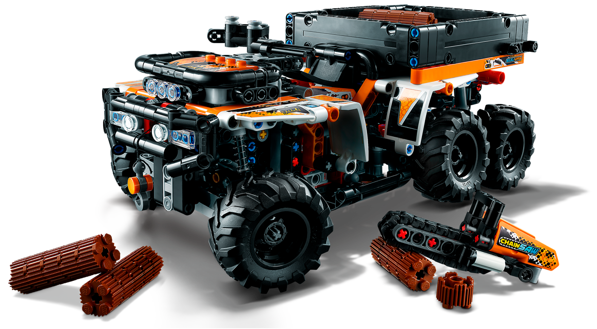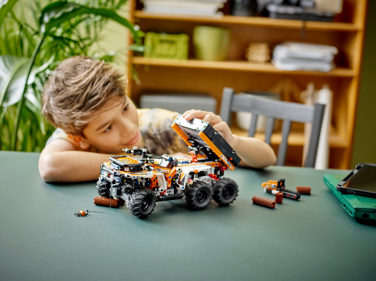 Dociekliwe dzieci w wieku od 10 lat będą zachwycone możliwością złożenia szczegółowego modelu LEGO® Technic Pojazd terenowy oraz zabawy nim. Zabawka ma sporo funkcji, tak jak prawdziwy pojazd terenowy: układ kierowniczy, zawieszenie, skrzynię biegów, a nawet silnik z ruchomymi tłokami. Wyposażona jest także w wyciągarkę i przechylaną skrzynię ładunkową, którymi można podnieść i przewieźć ciężkie ładunki.