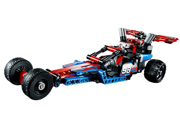 Dodatkowo możesz połączyć go z samochodem wyścigowym z zestawu 42011, aby zbudować superszybki wóz do sprintu samochodowego z silnikiem odciągowym, regulowanym spojlerem i otwieraną kabiną!
