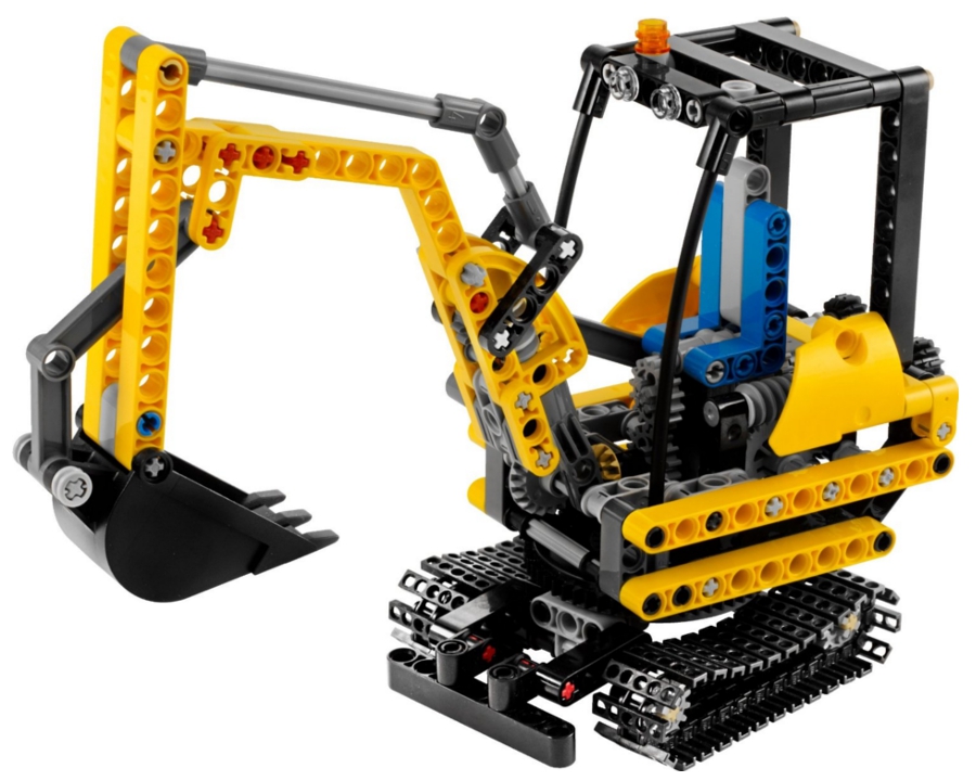 Mała koparka 8047 z serii Lego Technic umożliwia precyzyjne kopanie precyzyjną ruchomą łyżką. Koparka posiada precyzyjny chwytak montowany w miejsce łyżki do kopania. Posiada ruchome gąsienice i ramię.
