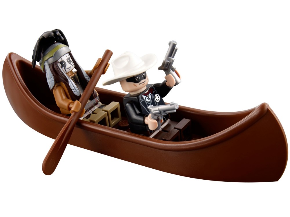 - 3 minifigurki z bronią: Samotnego strażnika, Tonto i wodza Czerwone Kolano.