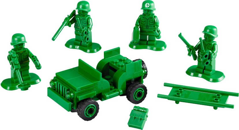Żołnierze na patrolu z serii Lego Toy Story. W sypialni Andyego właśnie wykonywana jest ważna, ściśle tajna misja - najwyższy czas wysłać do akcji zielonych żołnierzy! Podskakując na swoich podstawkach, dzielni żołnierze nigdy nie zapominają o swoich kompanach w niebezpieczeństwie. Na szczęście w pobliżu jest Jeep, który zapewni szybki i skuteczny odwrót z zagrożonej strefy!