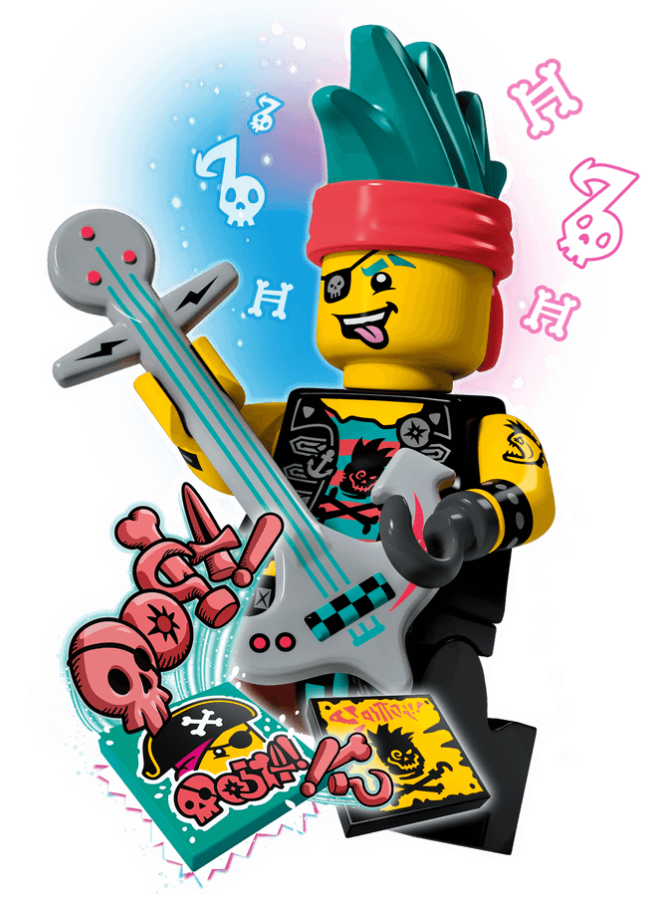 Zestaw LEGO® VIDIYO™ Punk Pirate BeatBox (43103) pomoże Ci zachęcić dzieci do tworzenia własnych teledysków. Znajdziesz w nim minifigurkę pirata punka, 14 losowych BeatBitów i dwa specjalne BeatBity. Pobierz darmową aplikację LEGO® VIDIYO™ i zeskanuj minifigurkę oraz BeatBity z efektami specjalnymi, aby ożywić postać występującą w nakręconym przez dzieci punkowym teledysku. Zeskanuj BeatBity za pomocą aplikacji, aby odblokować efekty specjalne i zamienić słowa piosenek na pirackie okrzyki. Ciekawy zestaw muzyczny w sam raz dla dzieci w wieku od 7 lat. Doskonale sprawdzi się jako prezent świąteczny dla każdego dziecka, które lubi muzykę, taniec i występy. BeatBox ma ok. 8 cm wysokości, 7 cm długości i 10 cm szerokości. Model da się złożyć, więc muzyczny świat może towarzyszyć dzieciom na każdym kroku. W środku jest miejsce na zbudowaną z klocków scenę, 16 BeatBitów i gitarę pirata. Aplikacja LEGO® VIDIYO™ jest kompatybilna z wybranymi urządzeniami z systemem iOS i Android. Zgodność urządzenia możesz sprawdzić na stronie www.LEGO.pl/devicecheck. Przed połączeniem się z Internetem dzieci powinny zapytać rodziców o zgodę. Zestawy LEGO® VIDIYO™ oferują nowe wrażenia z zabawy w grupie. Chłopcy i dziewczynki mogą wcielić się w reżyserów, producentów i gwiazdy muzyki oraz tworzyć i udostępniać własne teledyski. Elementy LEGO® spełniają rygorystyczne standardy branżowe, dzięki czemu są jednolite, zawsze do siebie pasują i można je z łatwością połączyć oraz rozdzielić — i tak jest niezmiennie od 1958 roku. Elementy LEGO® są zrzucane, podgrzewane, zgniatane, skręcane i badane na wiele innych sposobów. Dzięki temu możesz mieć pewność, że spełniają najwyższe światowe standardy bezpieczeństwa.