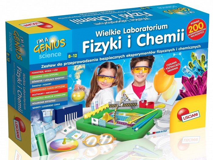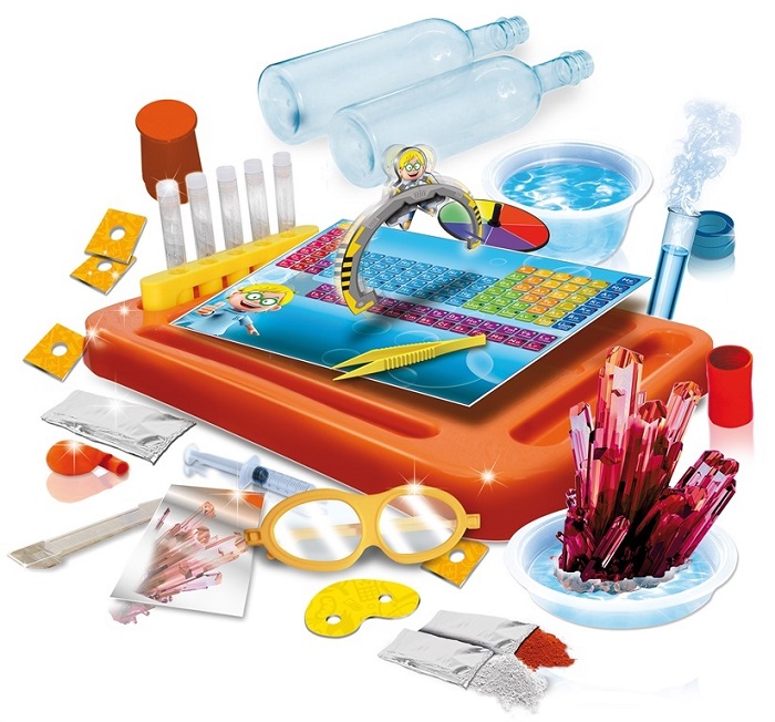 Zestaw oferuje dzieciom zostanie najprawdziwszymi odkrywcami w laboratorium. Otworzy przed nimi drzwi do tajemnic chemicznych i fizycznych. Pozwoli im wykonać ponad 200 prostych, zabawnych i bezpiecznych eksperymentów naukowych, jedynie przy pomocy rzeczy z zestawu. Dzięki praktycznej podstawce uda się dziecku utrzymać zawsze nienaganny, wręcz idealny, porządek! Ilustrowany podręcznik, dołączony do zestawu, pokaże krok po kroku jak wykonać wszystkie proponowane eksperymenty. Wykonaj tęczę w domu, zobacz co zawiera deszcz, wyhoduj swoje kryształy, stwórz musującą kredę i zrób małą górę lodową.
