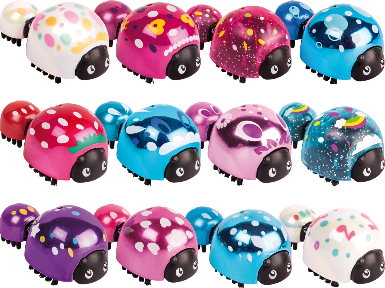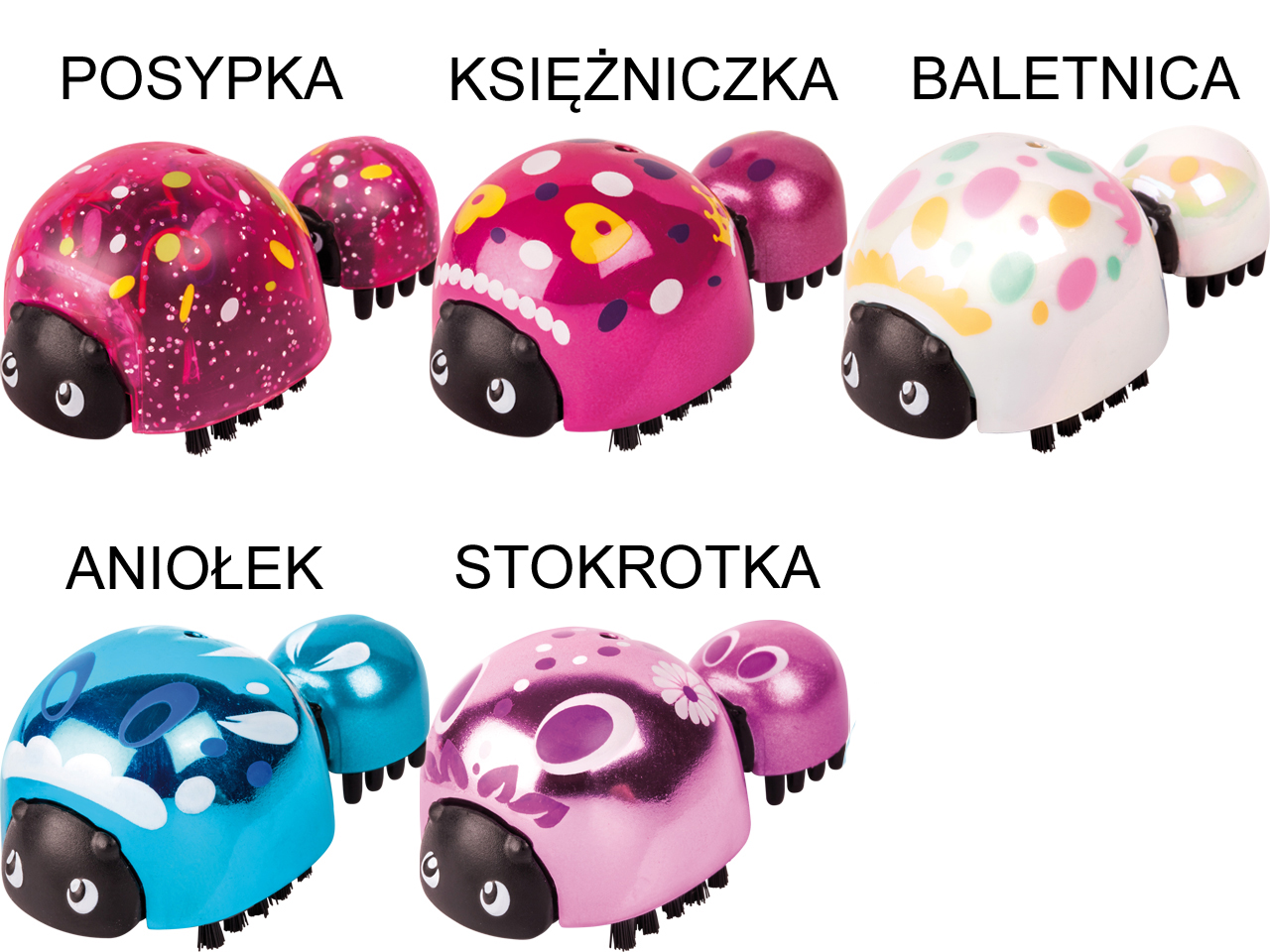 Maleńka i urocza biedroneczka, która zajmie Twoją uwagę na całe dni. Chodzi jak prawdziwa biedronka. Połóż ją na stole lub podłodze i obserwuj jak biega wokół. Twoja biedronka uwielbia bawić się ze swoim dzieckiem. Może ona pociągnąć nawet dwie malutkie biedroneczki dla podwójnej zabawy. W zestawie znajduje się mama i jej dzieci- jedno lub bliźniaki- to niespodzianka!