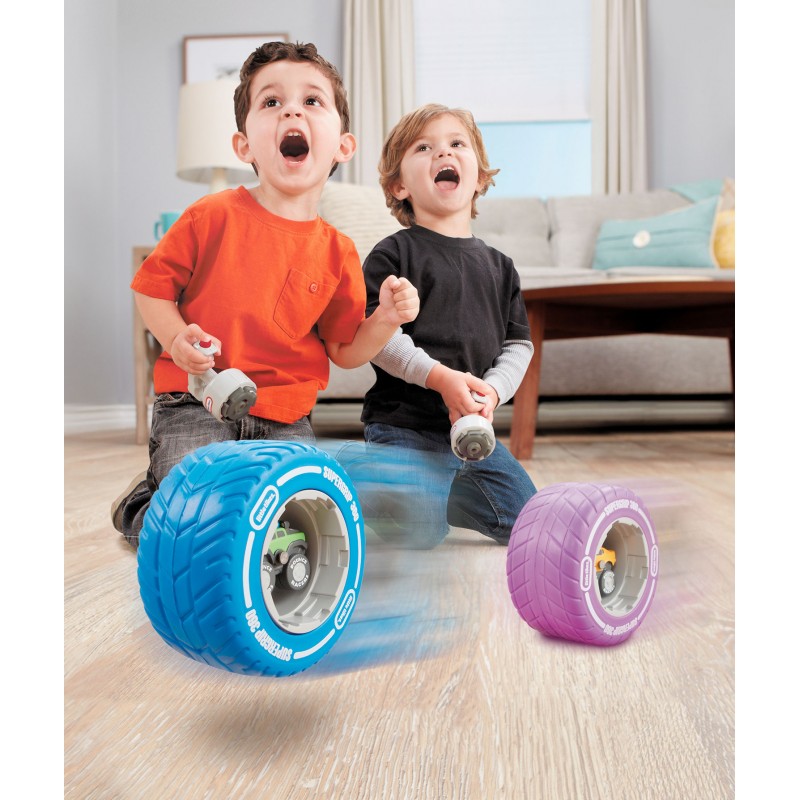 Autka w oponach to seria pojazdów Little Tikes umieszczonych w wewnętrznej krawędzi oponki. Przeznaczona dla przedszkolaków kolekcja zachęca do aktywnej, radosnej zabawy. Śmiało! Chwyć oponkę, wystrzel z wyrzutni i obserwuj, jak zabawnie wiruje lub toczy się po podłodze. Piankowa, fioletowa oponka, gwarantuje bezpieczną zabawę, bez negatywnego wpływu na powierzchnię. W plastikowej obudowie we wnętrzu oponki znajduje się pojazd. Do zestawu dołączona jest wyrzutnia.