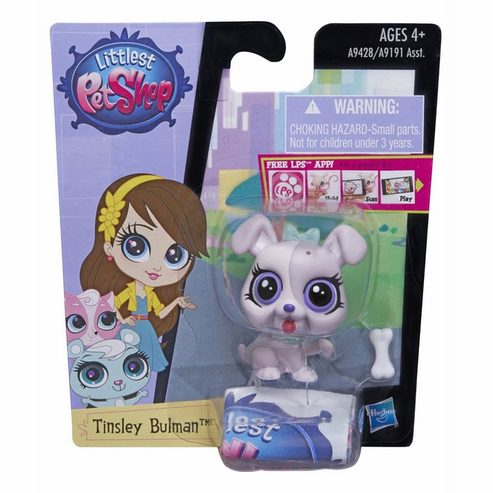 Każdy zestaw zawiera zwierzątko i element dekoracyjny, tak by dziewczynki mogły kolekcjonować i dekorować swoje zwierzaki. Tinsley Bulman to śliczny biało-szary piesek. W zestawie posiada białą kość, która z łatwością można zawiesić na jego głowie. Koło ucha posiada dziurkę, w którą można wpiąć ozdoby Littlest Pet Shop.