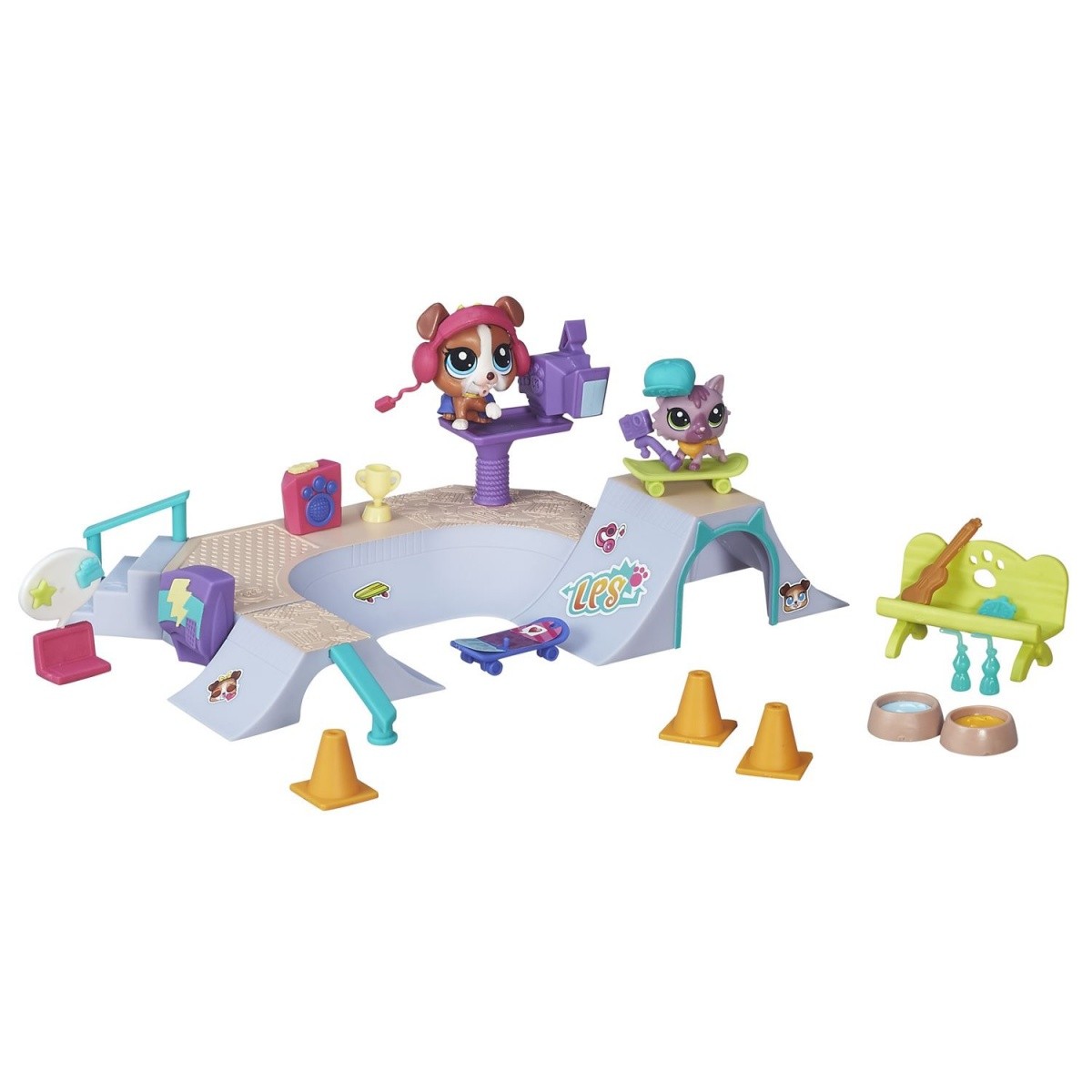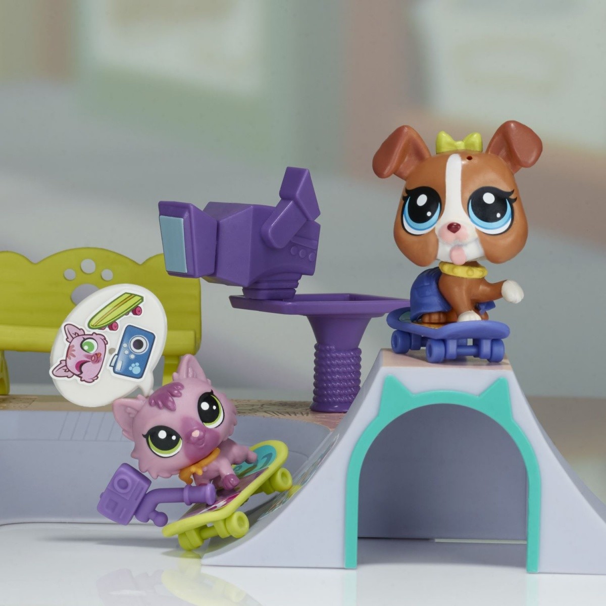 Z tymi zestawami Littlest Pet Shop będziecie mogli stworzyć mnóstwo niepowtarzalnych historyjek o przygodach waszych ukochanych zwierzaków. W Downtown City znajdą wiele miejsc do zabawy, choćby miejski skate park.