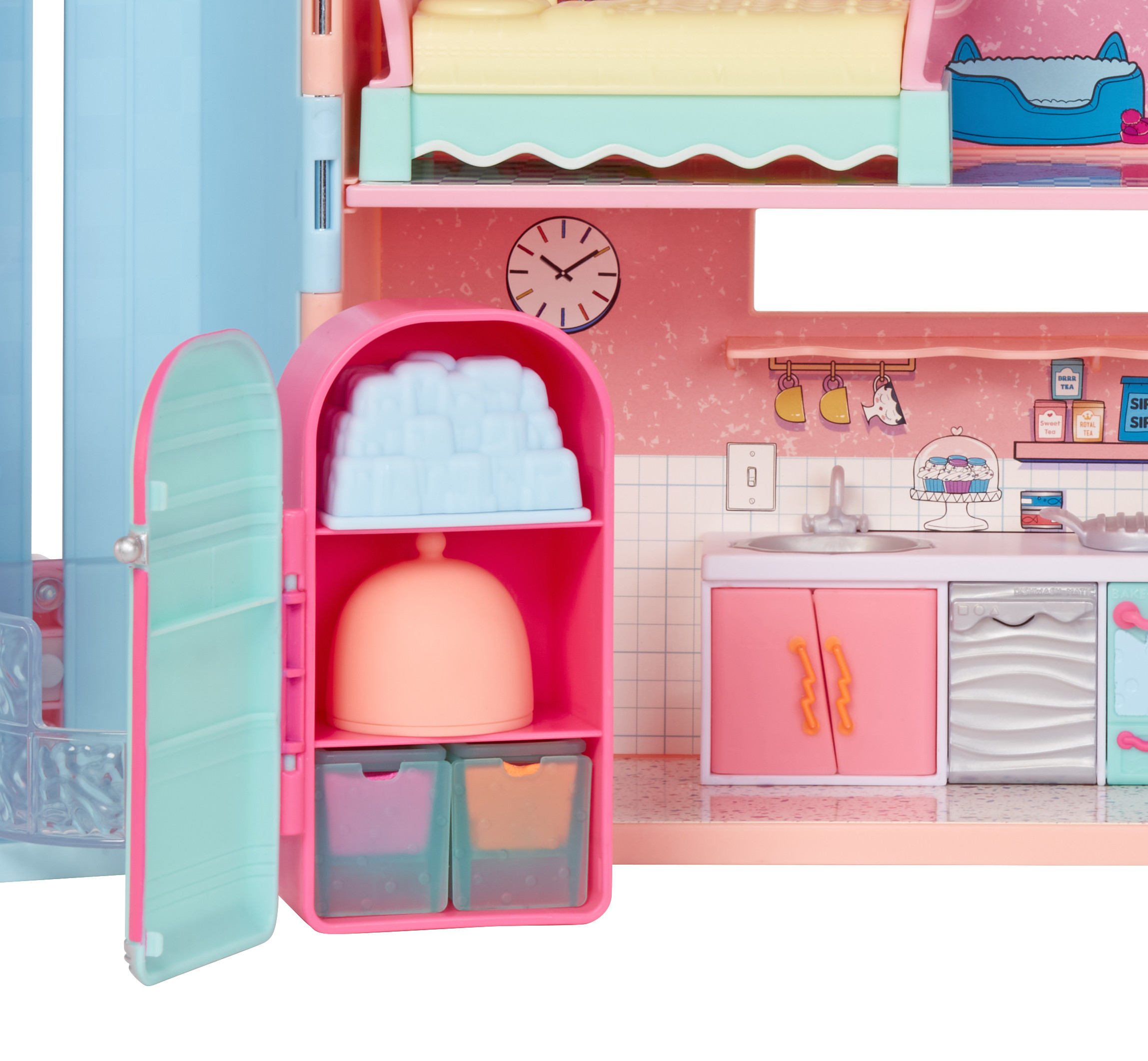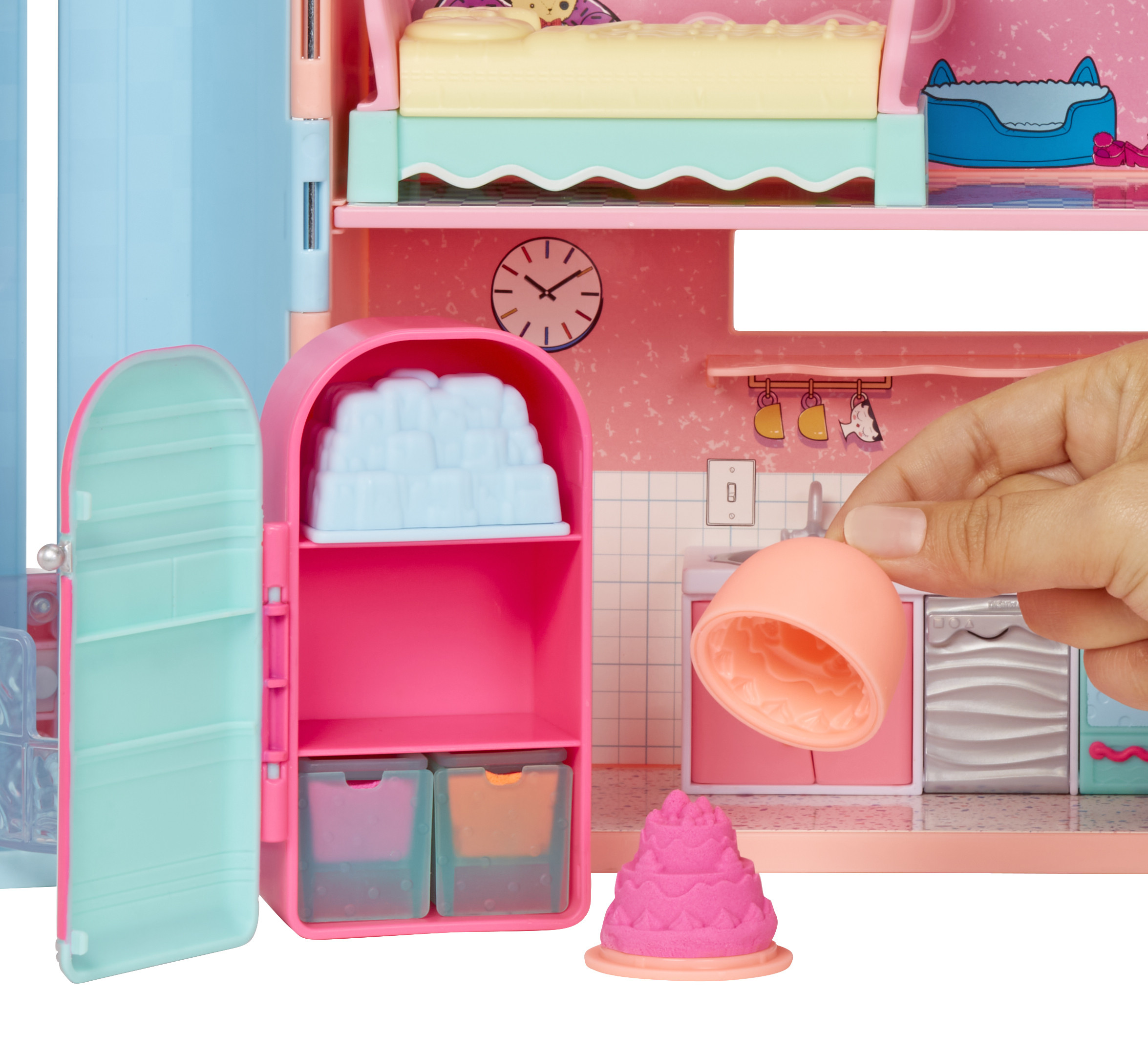 Przygotuj się na niesamowitą przygodę z formowalnym piaskiem Squish Sand, który nigdy nie wysycha! W każdej części magicznego domu czekają na Ciebie ukryte foremki z amuletami i mnóstwo kreatywnej zabawy. Każdy pokój to nowa przygoda – wykop niespodzianki ze specjalnych piaskowych form i odkryj sekrety tego niezwykłego domu. W zestawie znajdziesz m.in. ukochaną przez fanów lalkę LOL Diva, 50 niespodzianek, działającą windę, aż 5 kolorów Squish Sand i 15 piaskowych foremek z ukrytymi skarbami.Łącz kolory Squish Sand, aby tworzyć zupełnie nowe odcienie. Używaj mebli jako foremek i nadaj piaskowi fantazyjne kształty – od fioletowych gofrów w kuchni po wirujące różowo-niebieskie ciasto w lodówce!