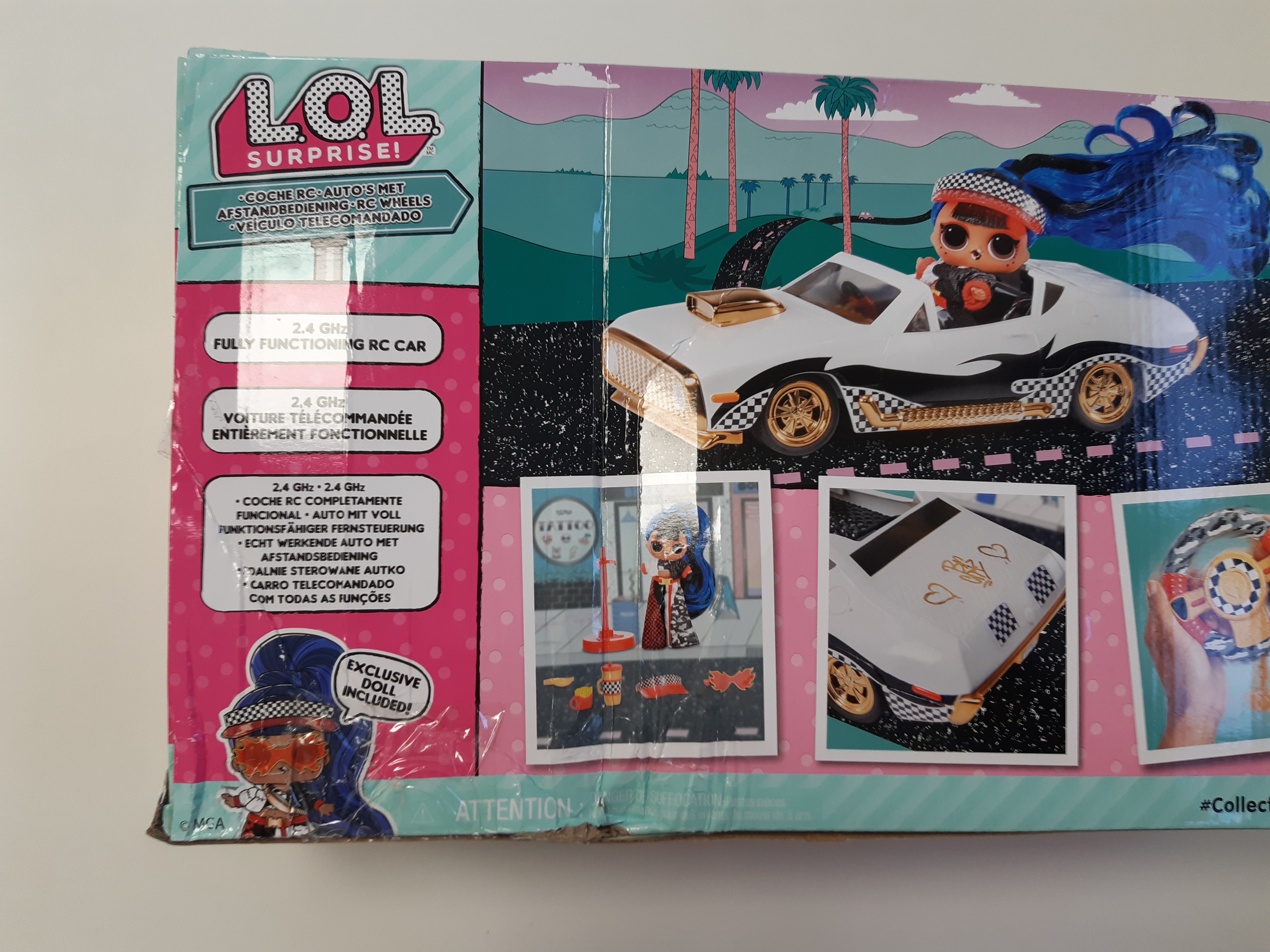 Samochód L.O.L. Surprise RC Wheels to pierwszy zdalnie sterowany pojazd przeznaczony dla lalek L.O.L. Surprise. Teraz Twoje lalki będą podróżowały w wielkim stylu. Samochód posiada funkcje zdalnego sterowania i jest łatwy w prowadzeniu. Kierownica jest łatwa w obsłudze i sprawia, że sterownie autem to czysta przyjemność. By jechać do przodu i do tyłu wystarczy nacisnąć przycisk kierownicy, aby skręcić obracaj kierownicą w prawo i w lewo. Zestaw zawiera wyjątkową lalkę modnisię L.O.L. Surprise J.K. z realistycznymi włosami, ubrankiem i wysokimi butami. Zestaw zawiera naklejki, którymi możesz udekorować pojazd. Do limuzyny wsiądą zarówno lalki LOL Surprise jak i mini laleczki modelki LOL Surprise J.K.